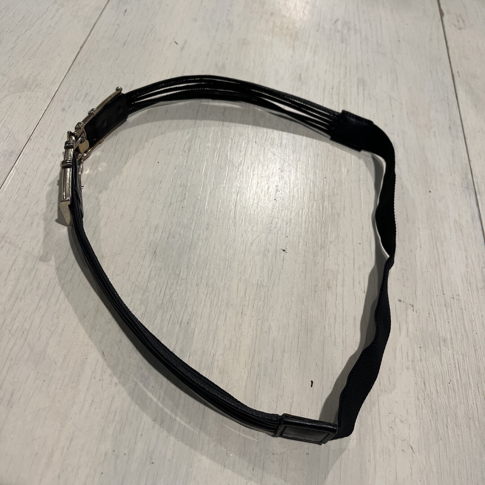 как выглядит CHICOS BLACK STRETCH LETHER BELT W/ SILVER TONE CLIP BUCKLE SIZE S фото