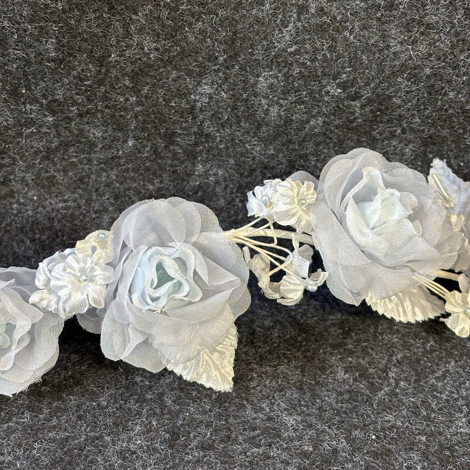 Vintage Bridal Wedding Crown Headband Satin Lace Bendable Headpiece Flower Blue