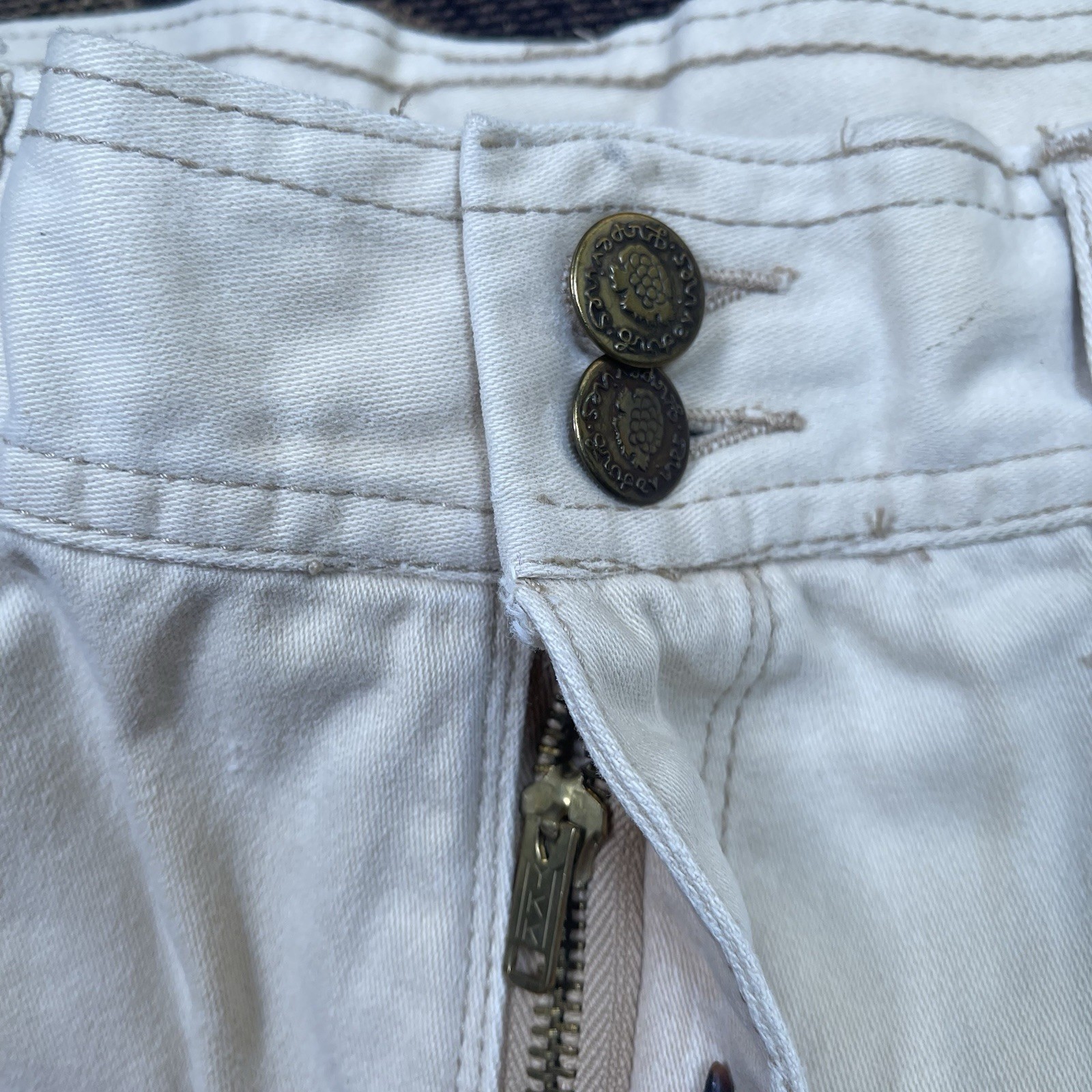 как выглядит Vtg 70s Grape Vines Cargo Flare Wide Leg Beige Pants Juniors Size 32x33 фото