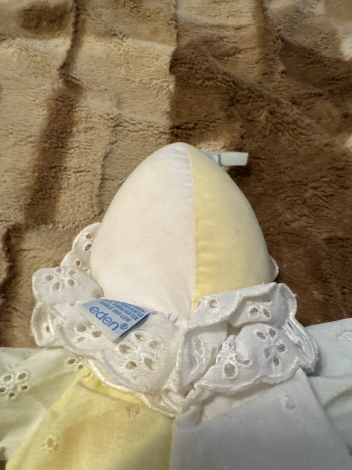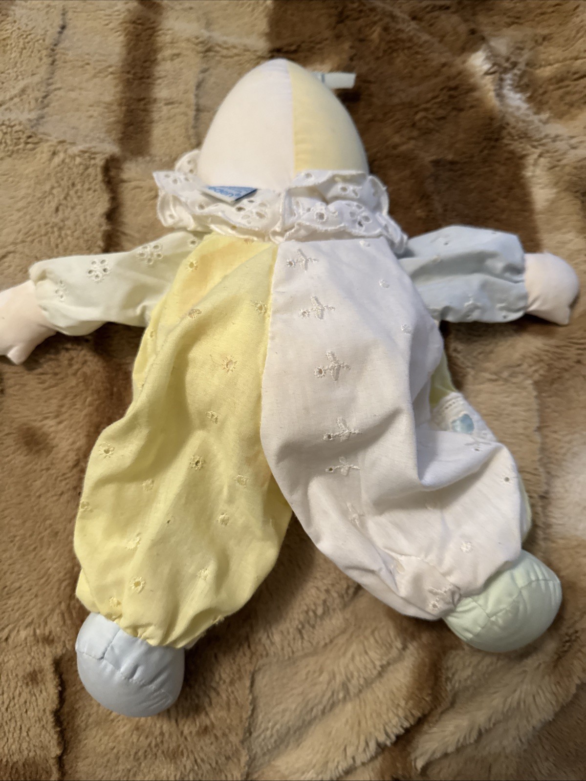 Vintage Eden Eyelet Lace Cloth Soft Body Clown Baby Doll Yellow Blue Pastel 14