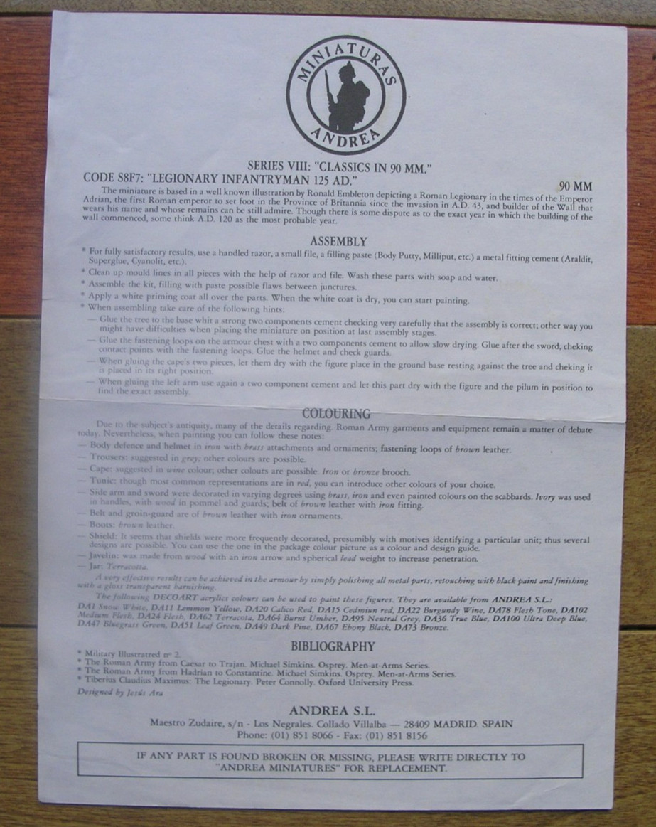Andrea Miniatures S8-F7 Roman Legionary 90mm metal kit New Old Stock