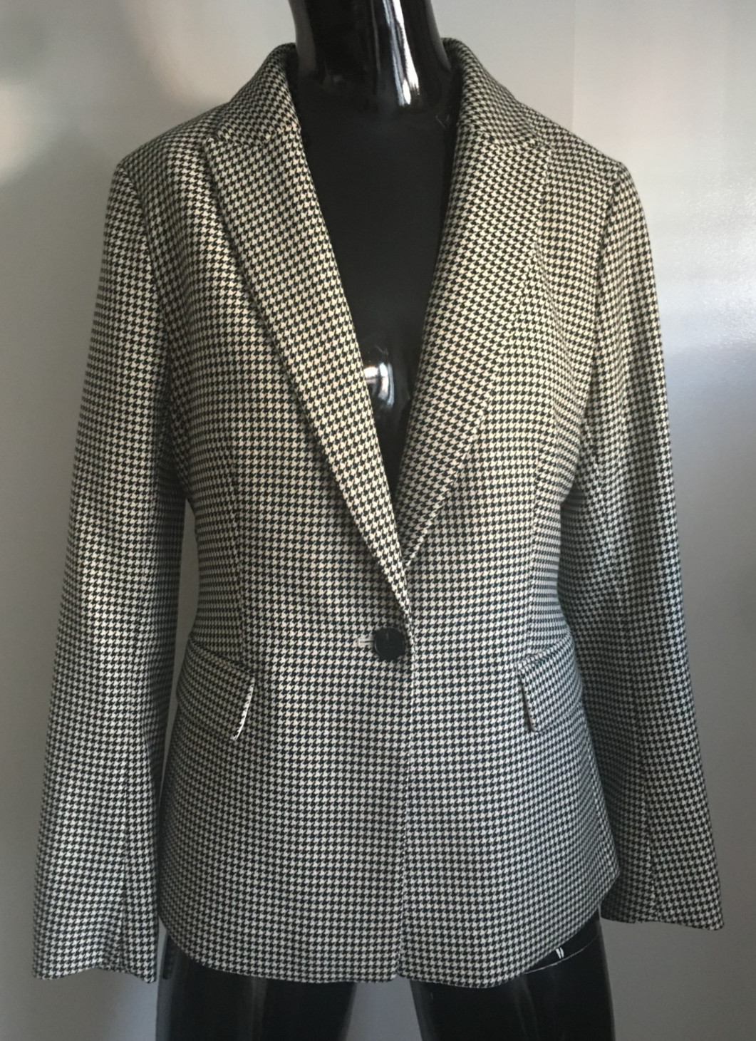 H M Size S Polyester Viscose Black White Houndstooth Single Button Blazer NWT