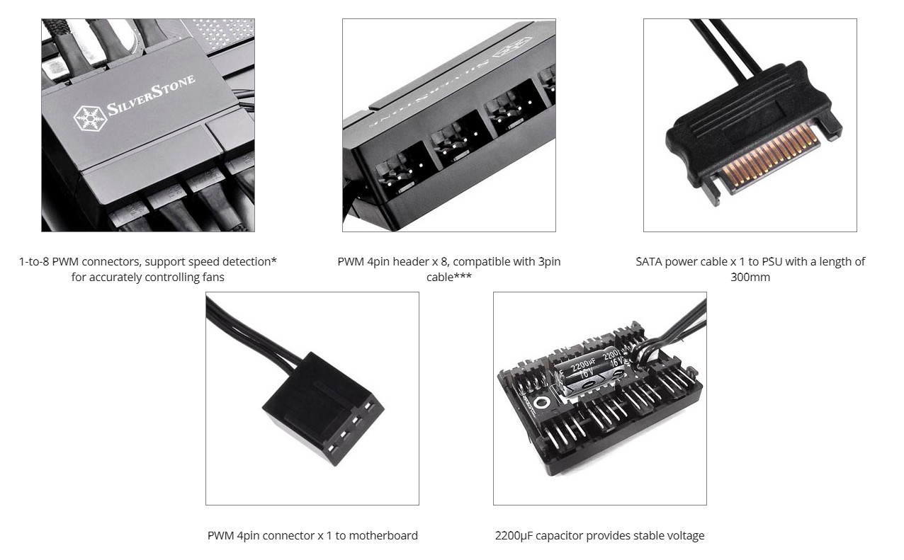 SilverStone Technology CPF04 All Black 1-to-8 PWM Fan Hub