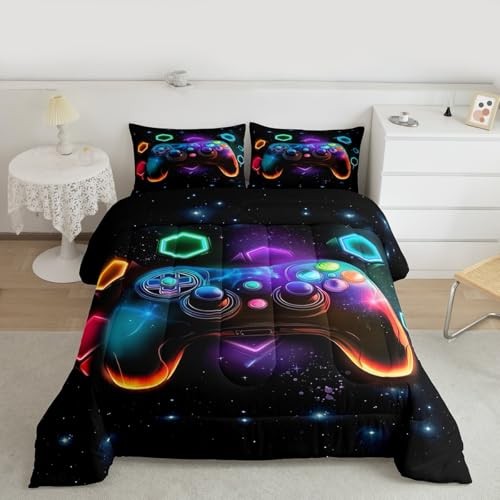 Game Consoles Gaming Bedding Set Gamer Gifts,Gaming Queen Black Red Green Blue