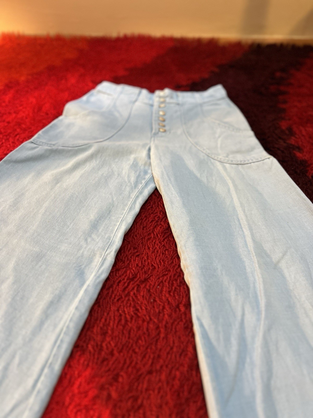 как выглядит VTG Womens 70s Light Blue Denim High Waist Bell Bottom Bellbottoms Sz 9 фото
