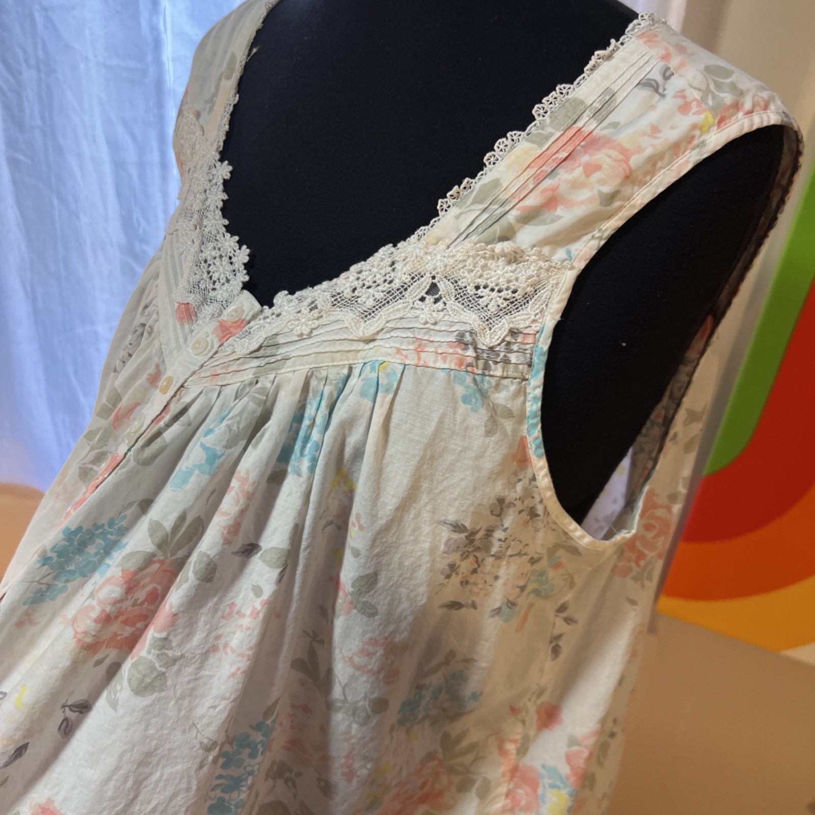 Eileen West Ballet Nightgown Cotton Cherry Blossom Boho Lace Sleeveless Large