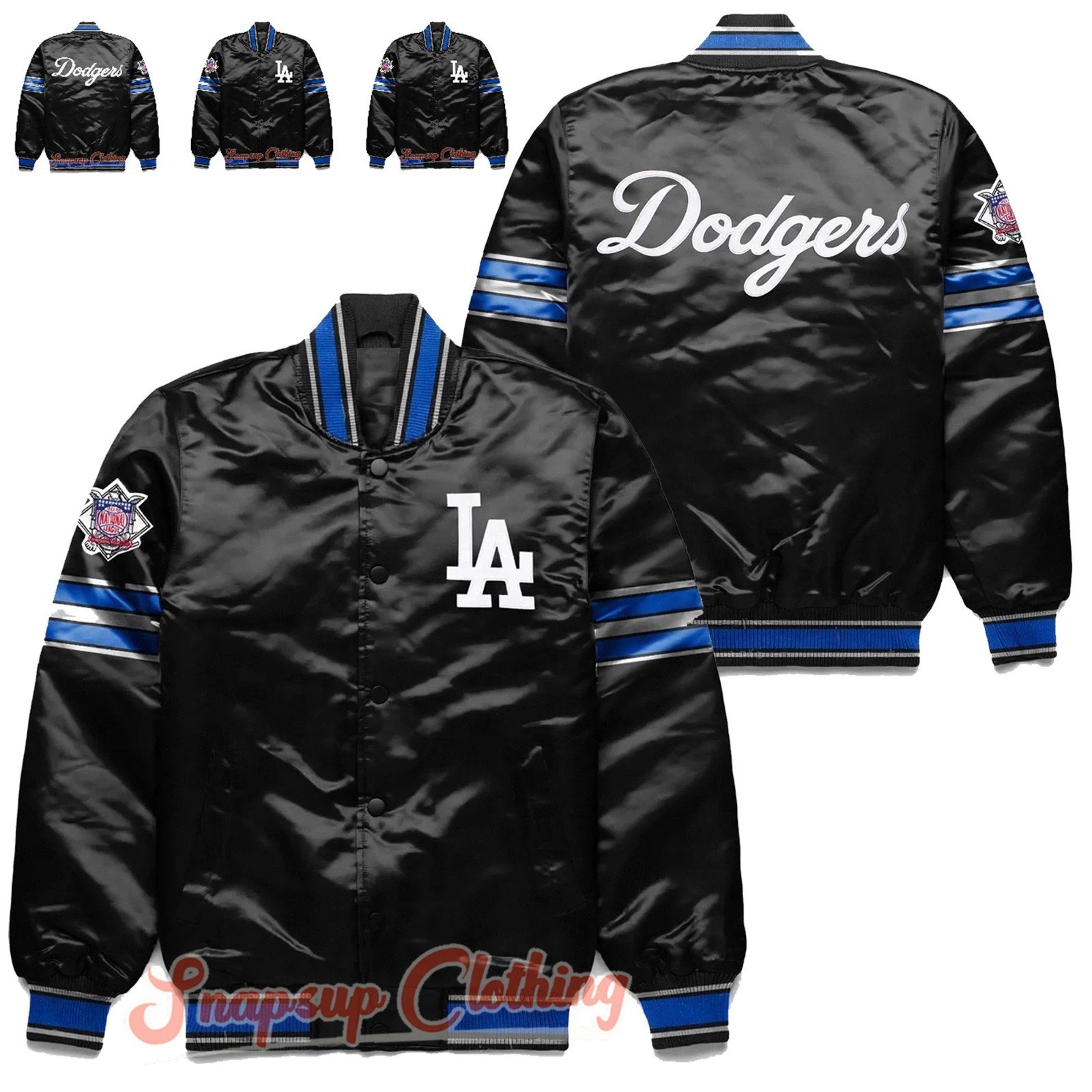Unisex LA Dodgers World Series Champions Black Satin Baseball FansVarsity Jacket