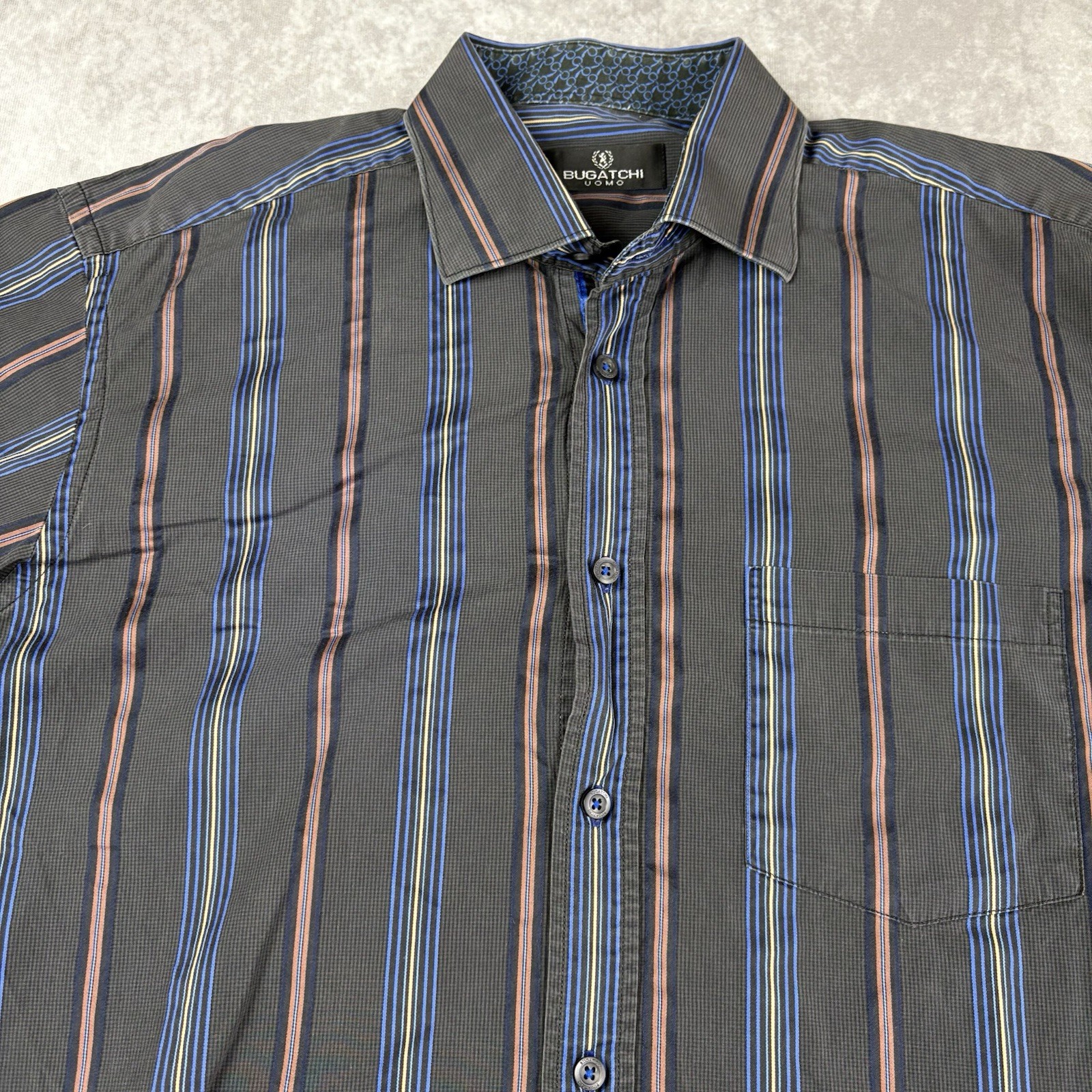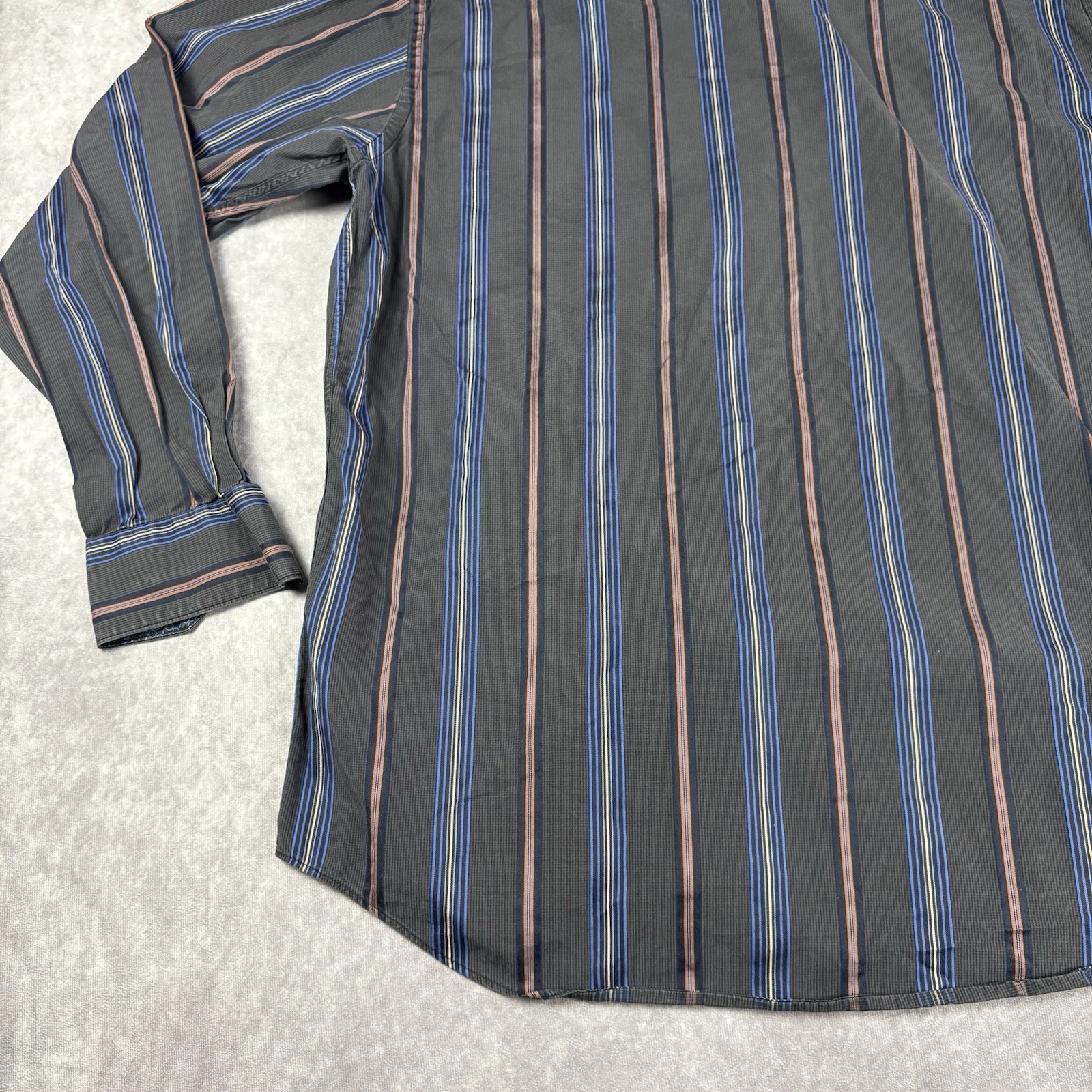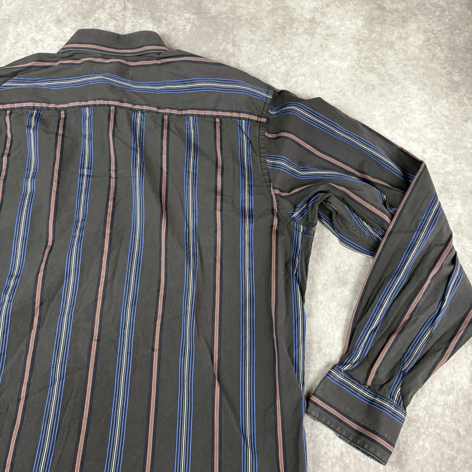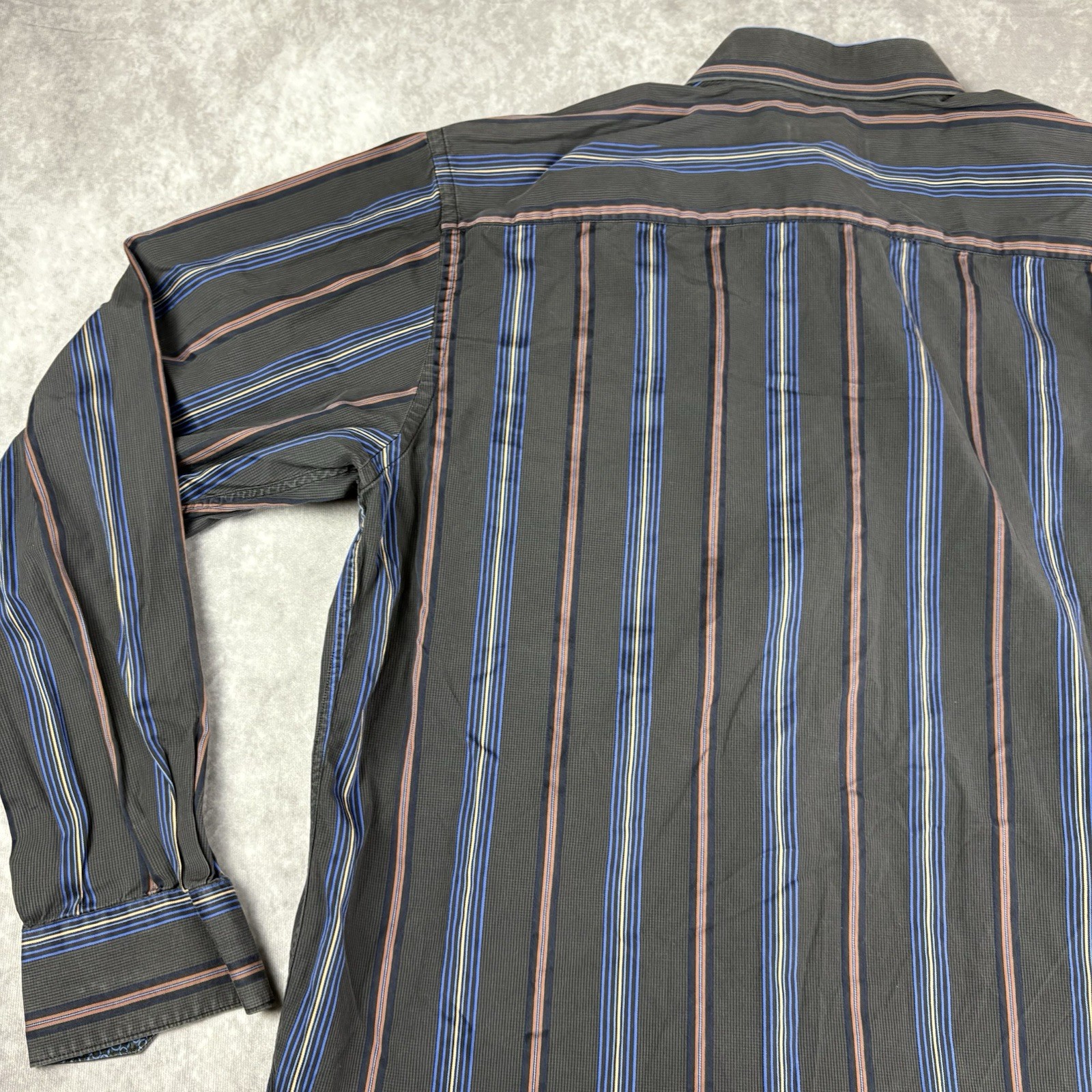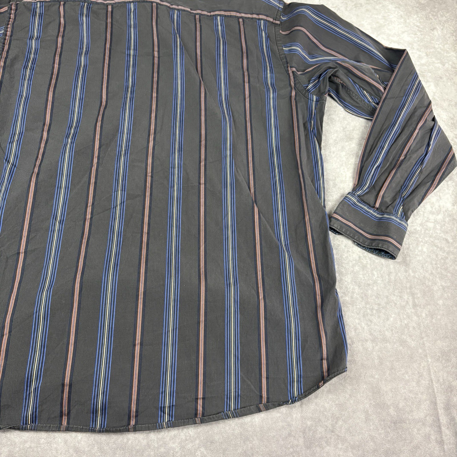 как выглядит Bugatchi Uomo Dress Shirt Mens XL Gray Colorful Stripe Business Office Flip Cuff фото