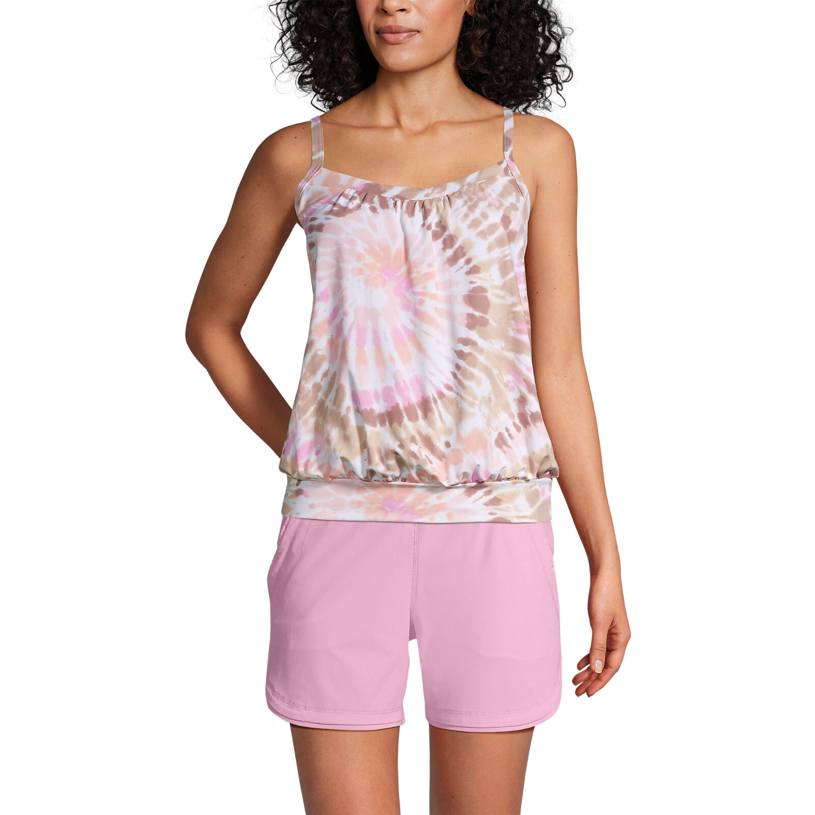 как выглядит New Lands End Womens Blouson Tankini Swim Top 522618 White Burst Tie Dye фото