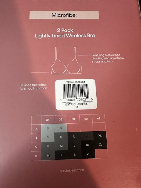 Calvin Klein Women's Microfiber 2 Pack Wireless Bra Ostrich Shore Size Medium