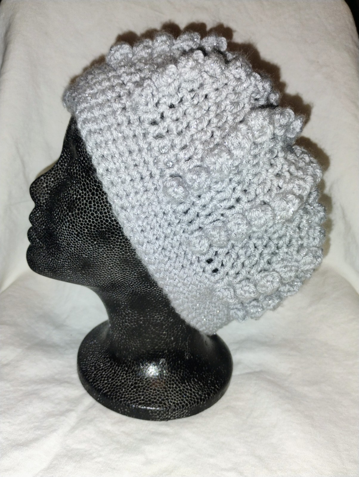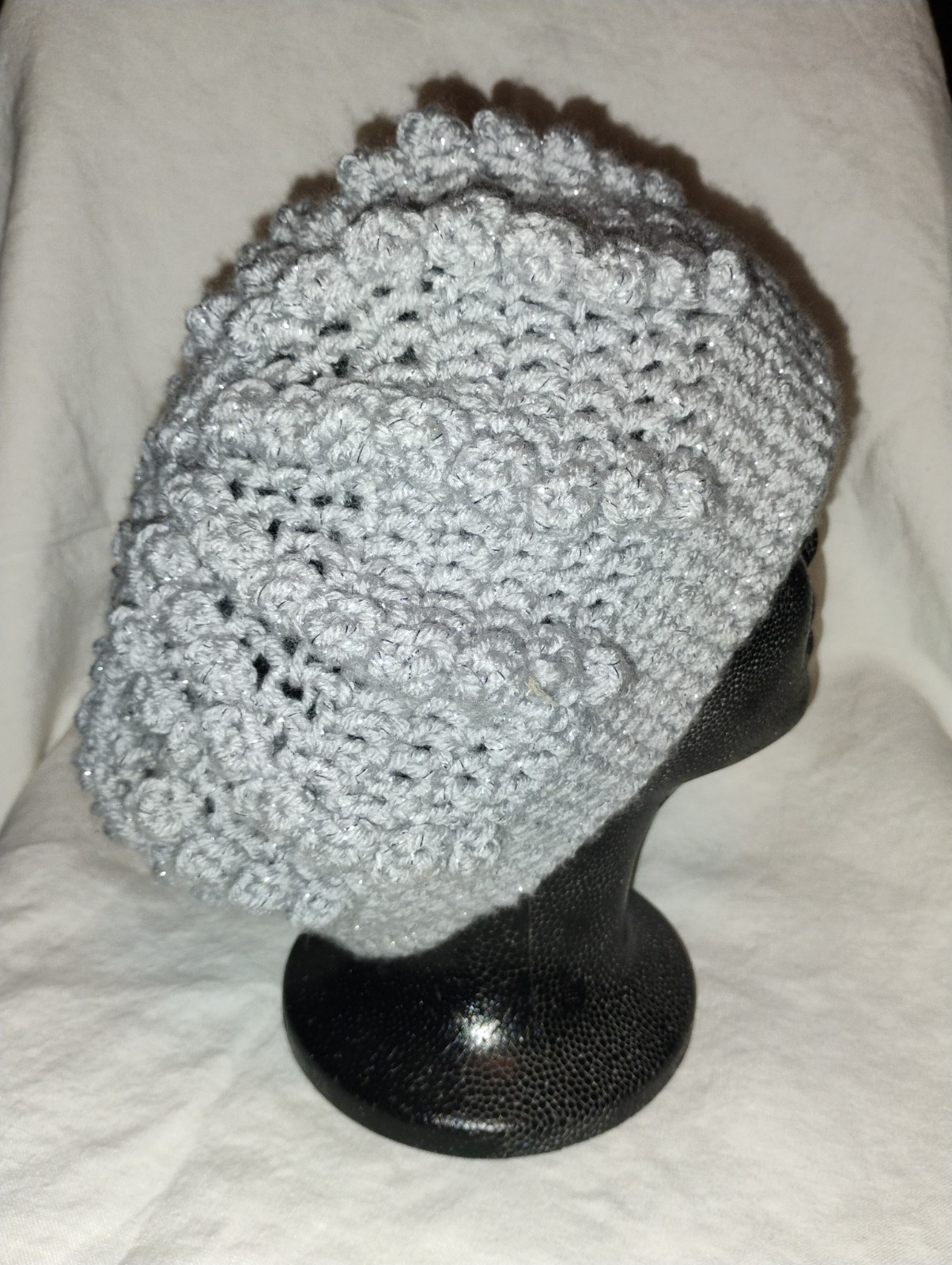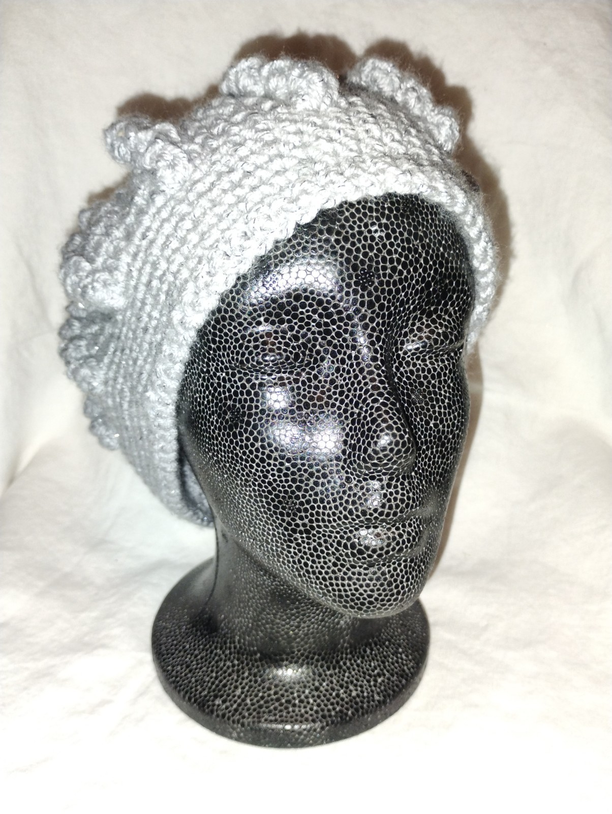 Silver Gray Handmade Crochet Hat Beanie Slouchy Style