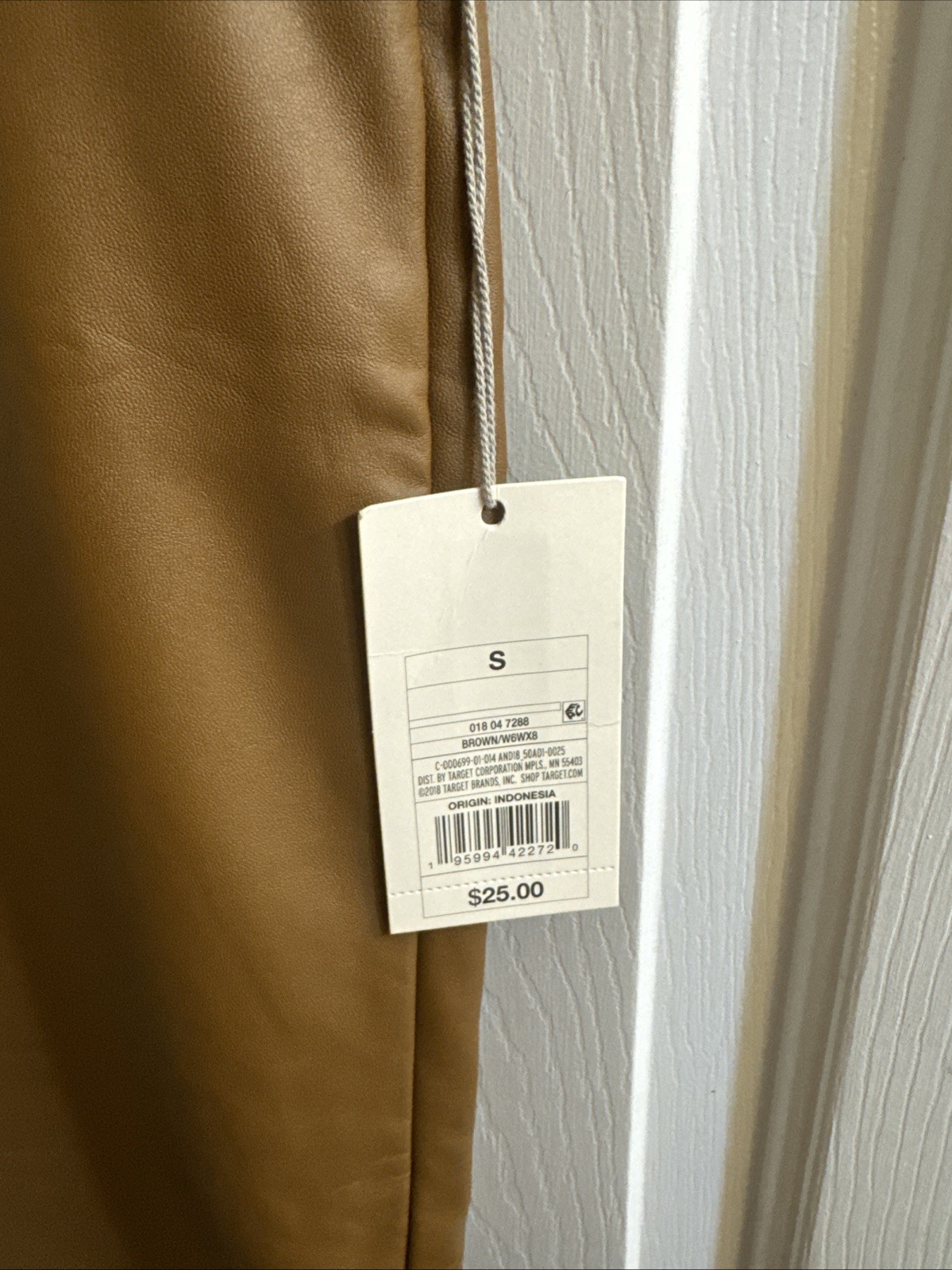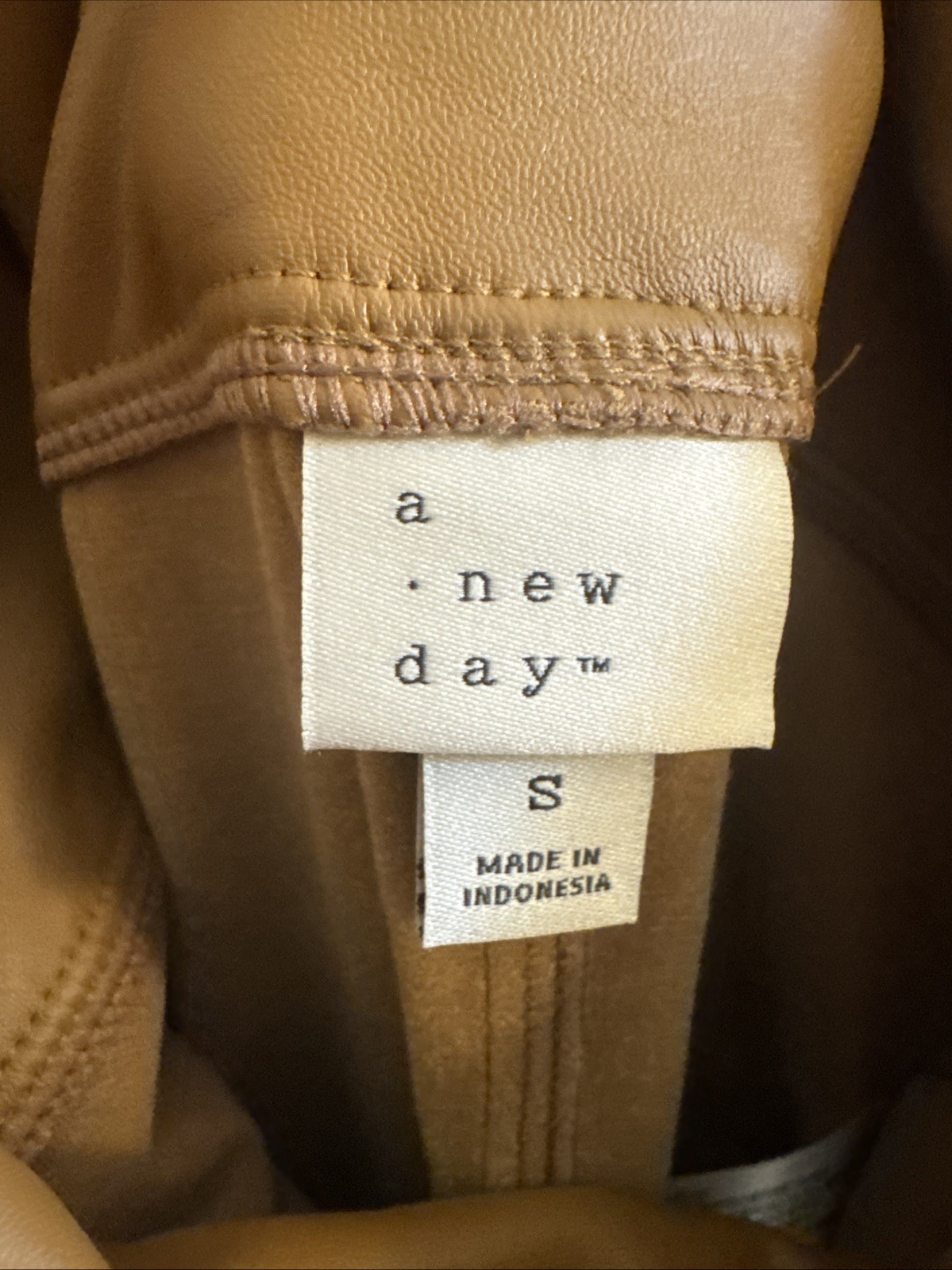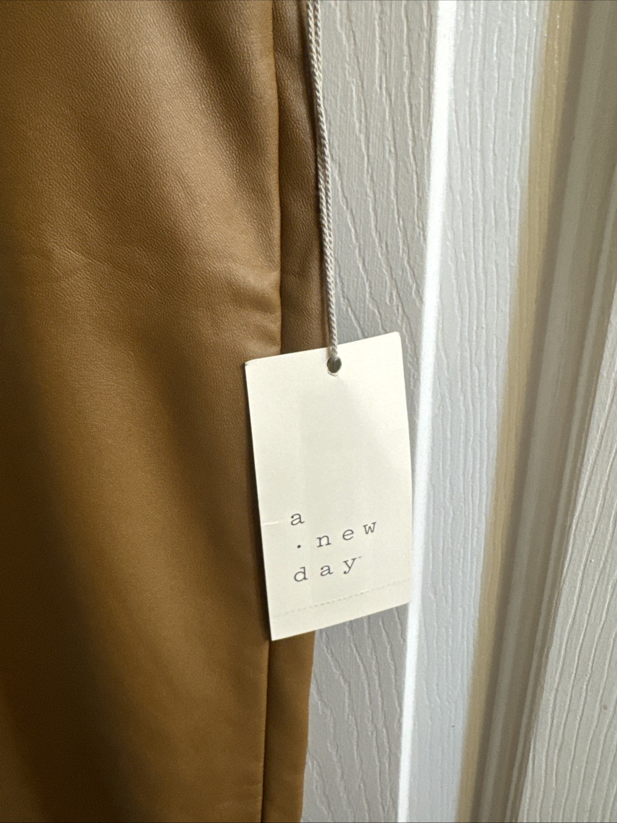A New Day Pants Women S Brown Skinny Faux Leather Mid Rise Pull On Ladies NWT