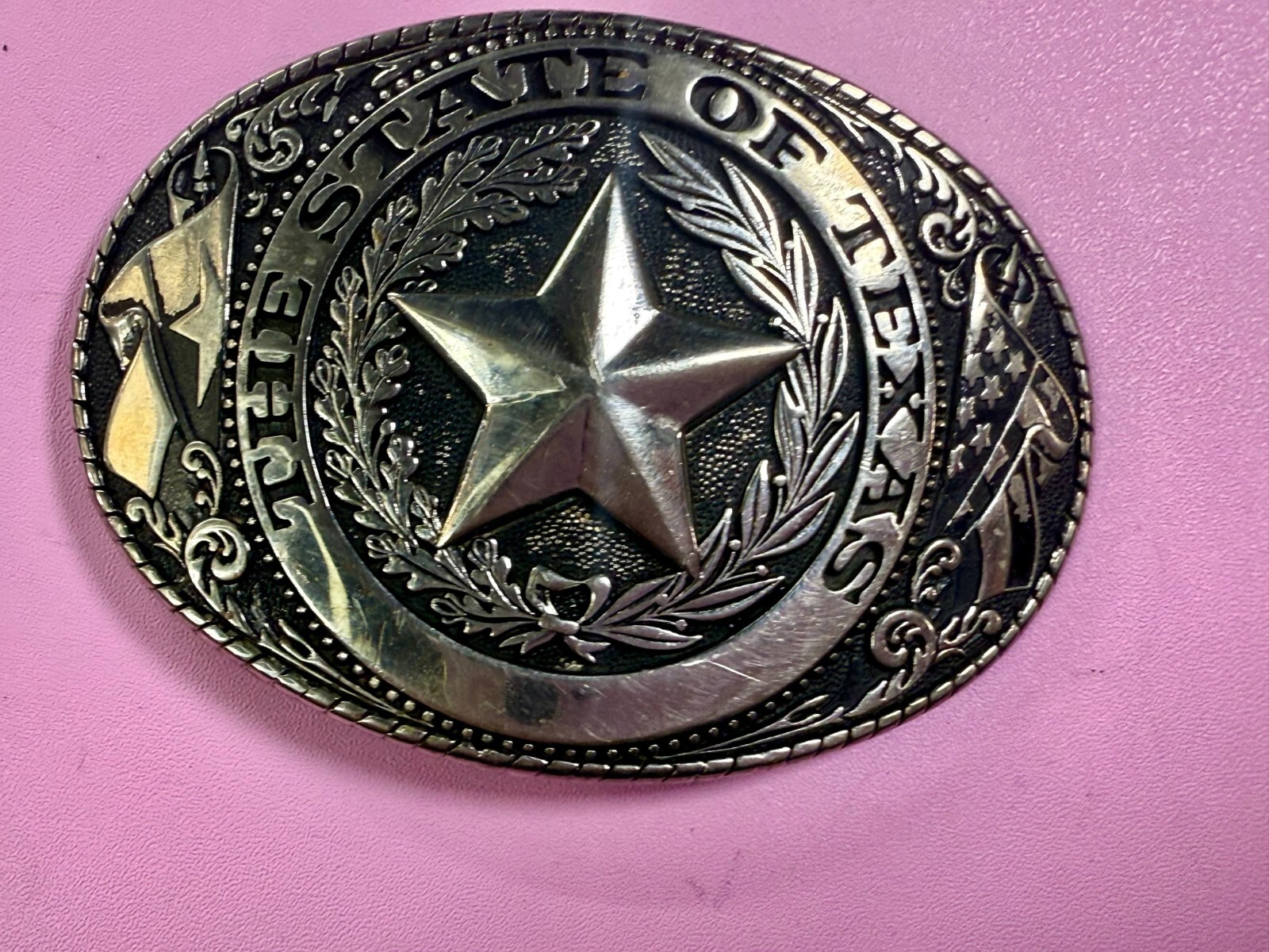 как выглядит The Great State Of Texas LONE STAR Flag Olive Branch Silver Color Belt Buckle фото