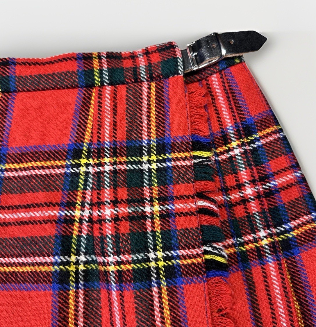 Vintage O Neil of Dublin Wool Tartan Kilt Skirt Red Plaid Wrap w/ Buckles 27 29