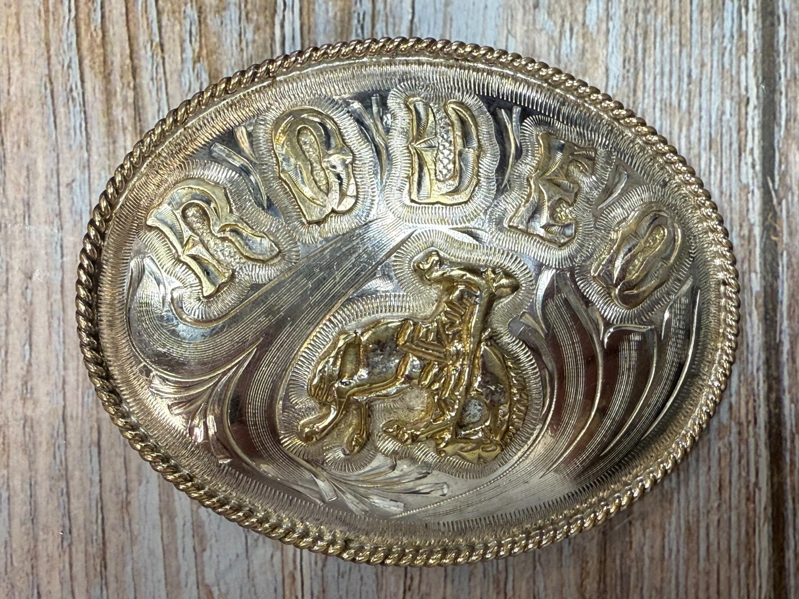Professional RODEO Cowboy Horse Saddle Bronc Bronco Busting Alpaca Belt Buckle