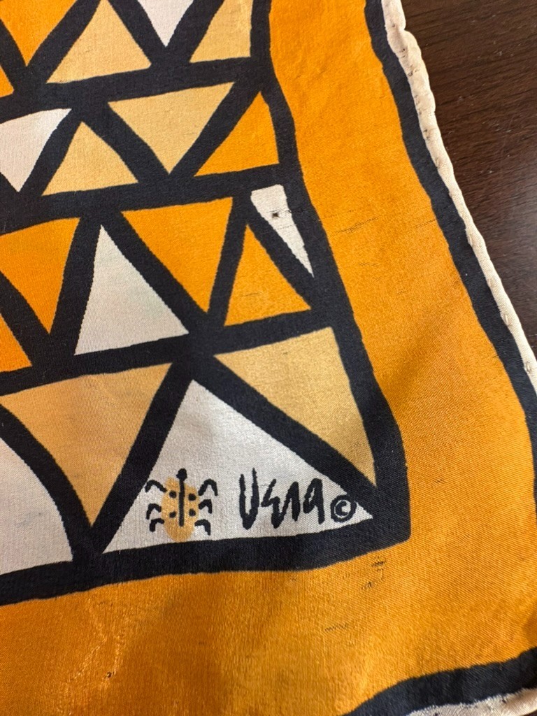 как выглядит Vtg Vera Neumann Scarf Square 30" 1960s 1970s Mod Geometric Pattern Yellow Gold фото