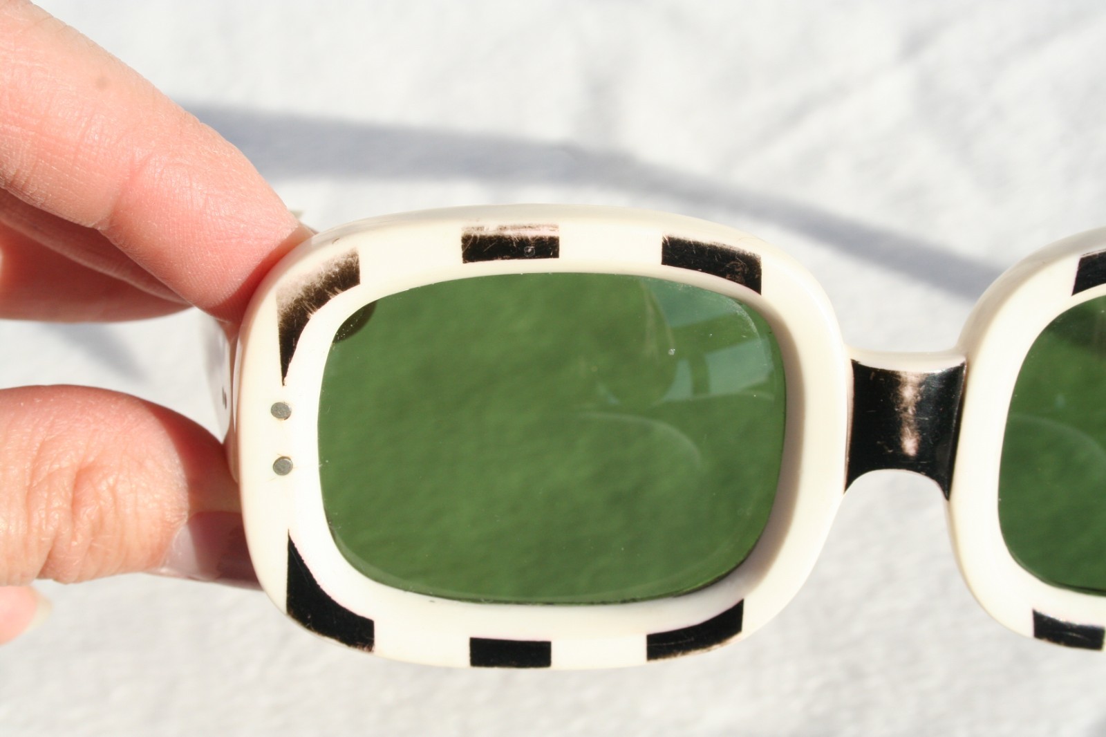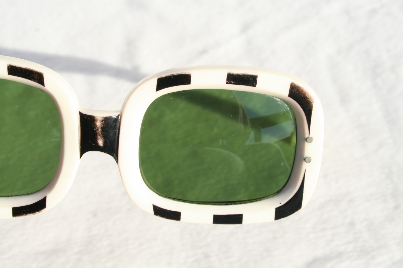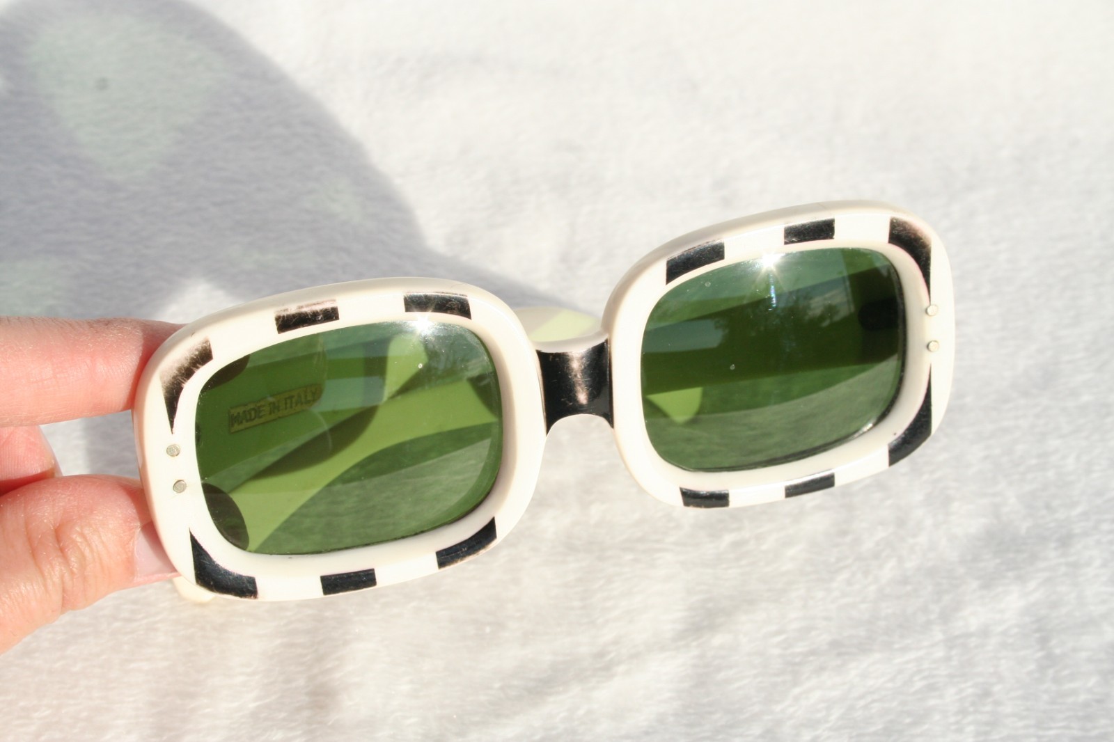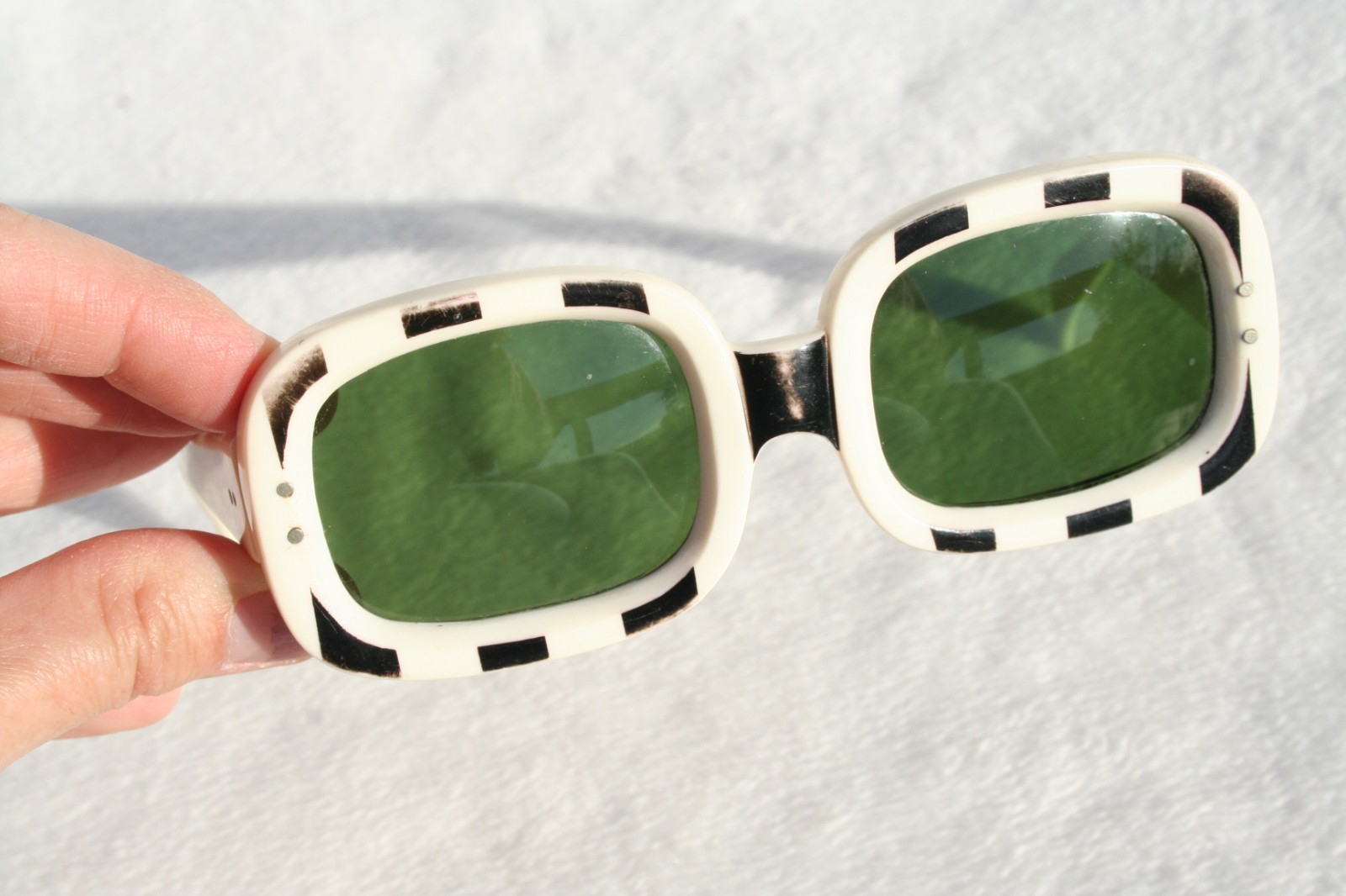 VINTAGE PSYCHEDELIC SUNGLASSES BLACK WHITE CHECKED NEW WAVE PUNK ROCKER RARE HTF