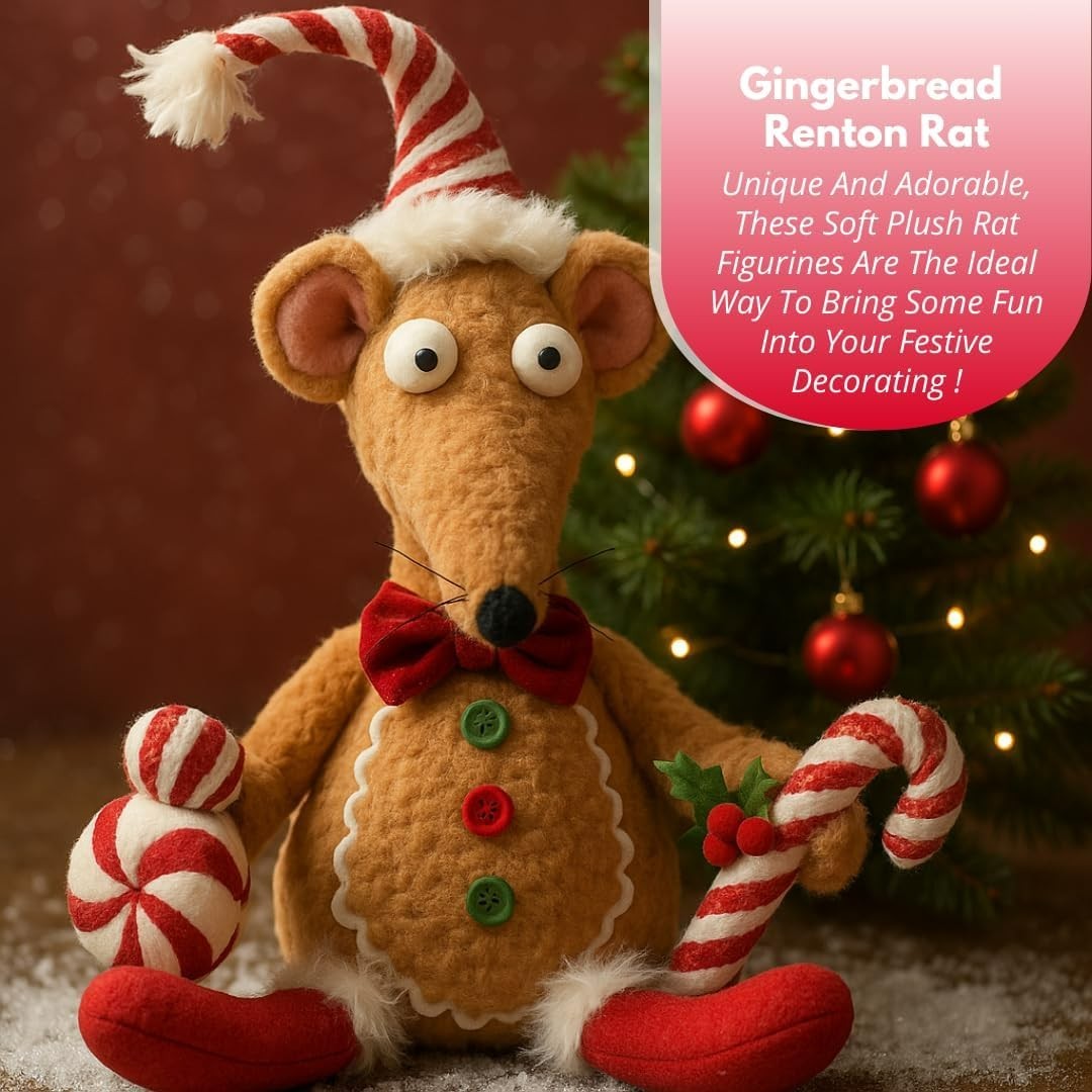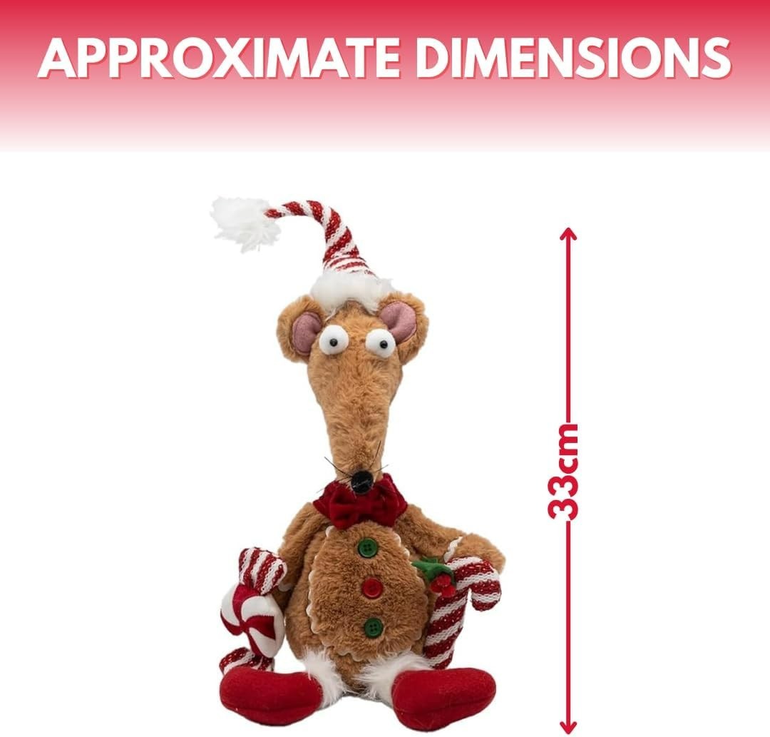 Christmas Gingerbread Rat Decoration Soft Plush 33cm Xmas Seated Novelty Small
