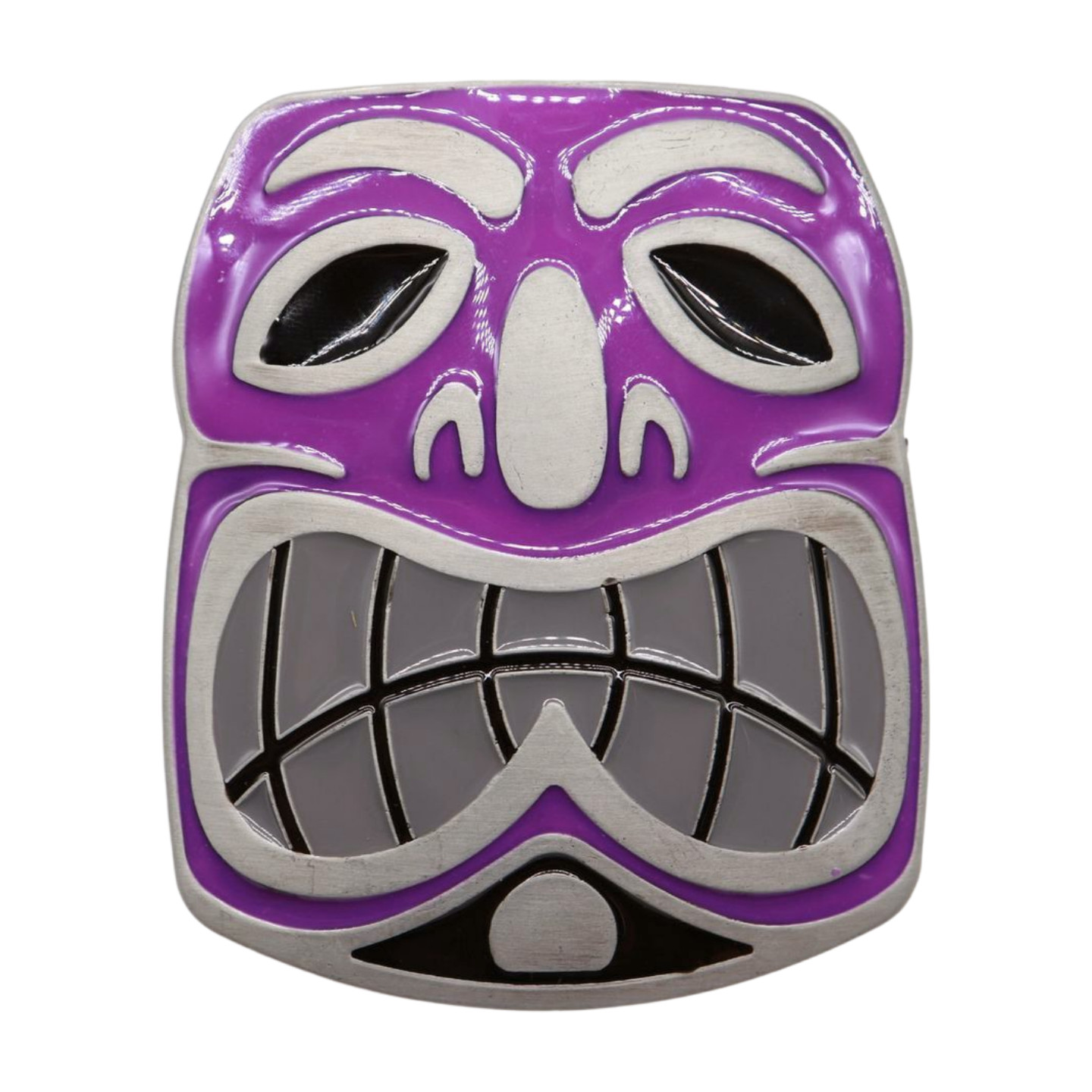 Men Women Silver Metal Belt Buckle Big Tiki Mask Statue Animation Purple Present