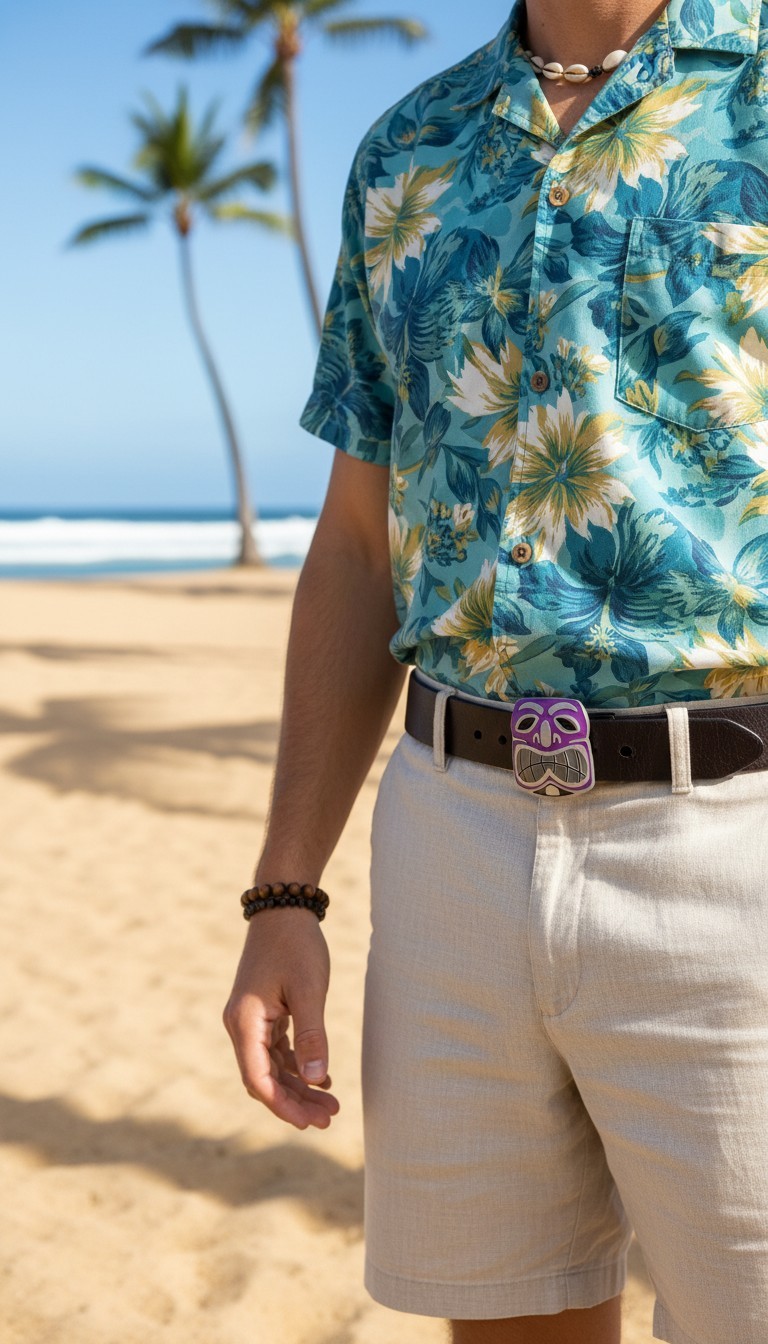 как выглядит Men Women Silver Metal Belt Buckle Big Tiki Mask Statue Animation Purple Present фото