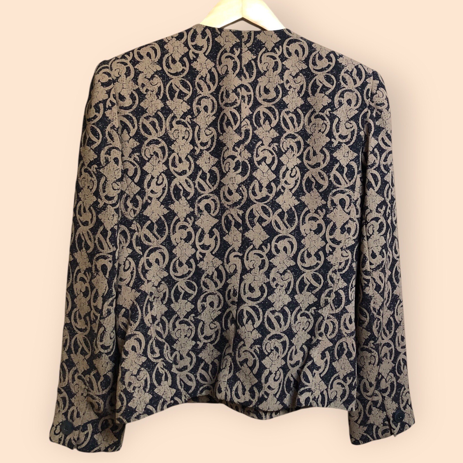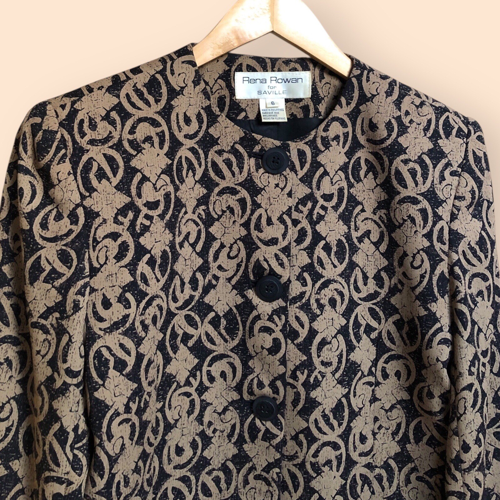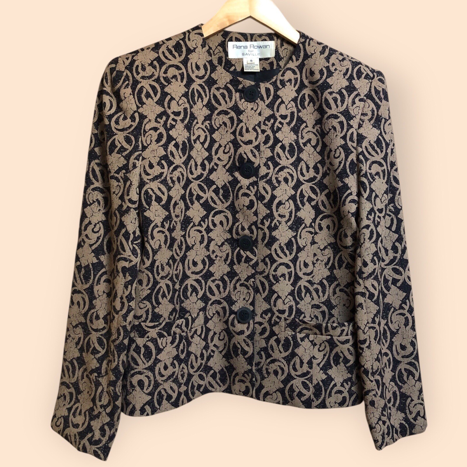 Vintage 90s Rena Rowan for Saville Black Tan Patterned Blazer Jacket Women s 6