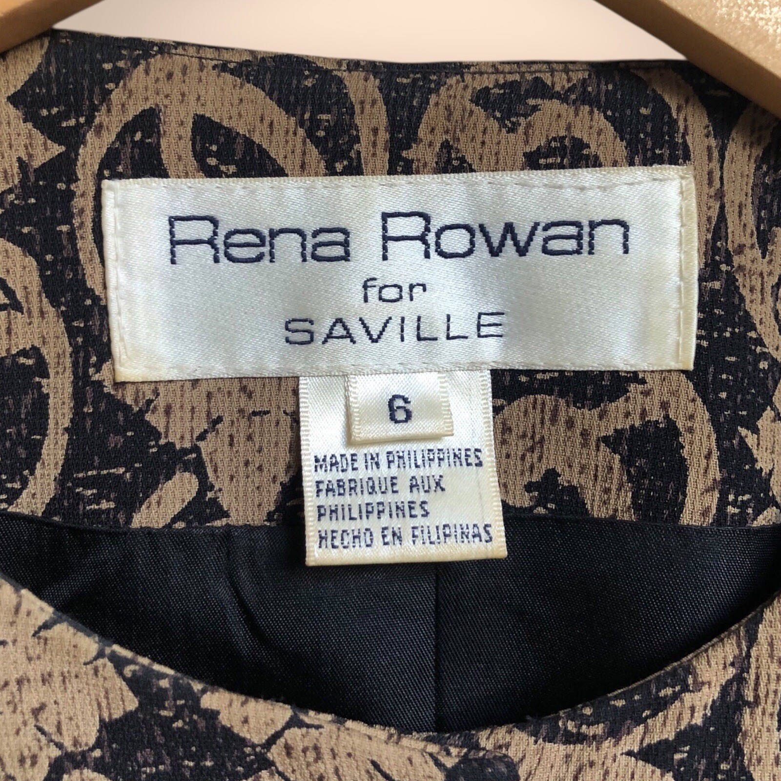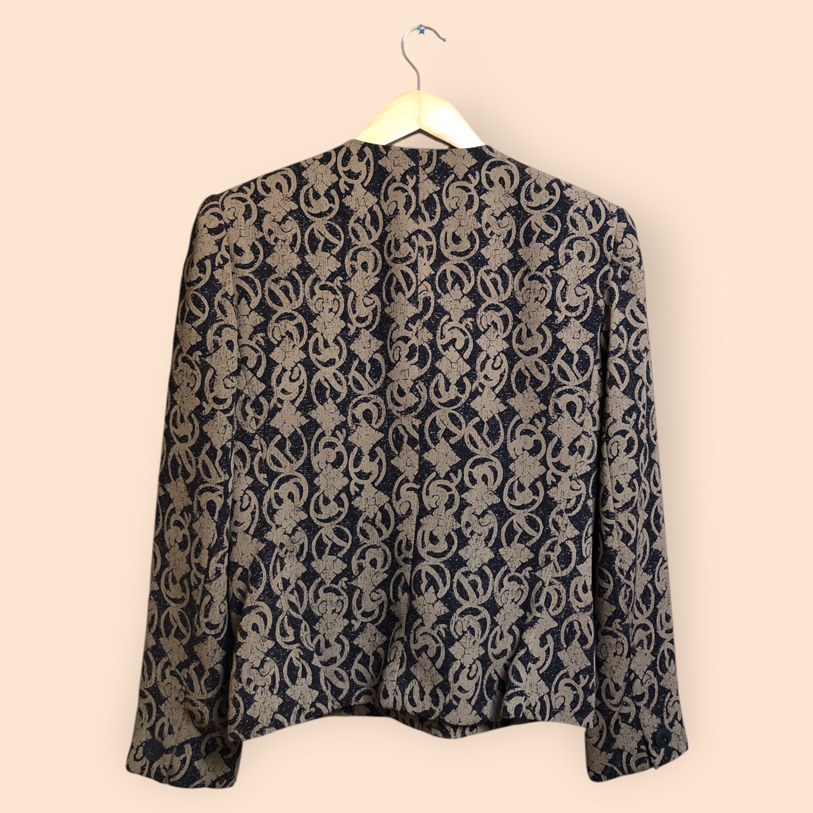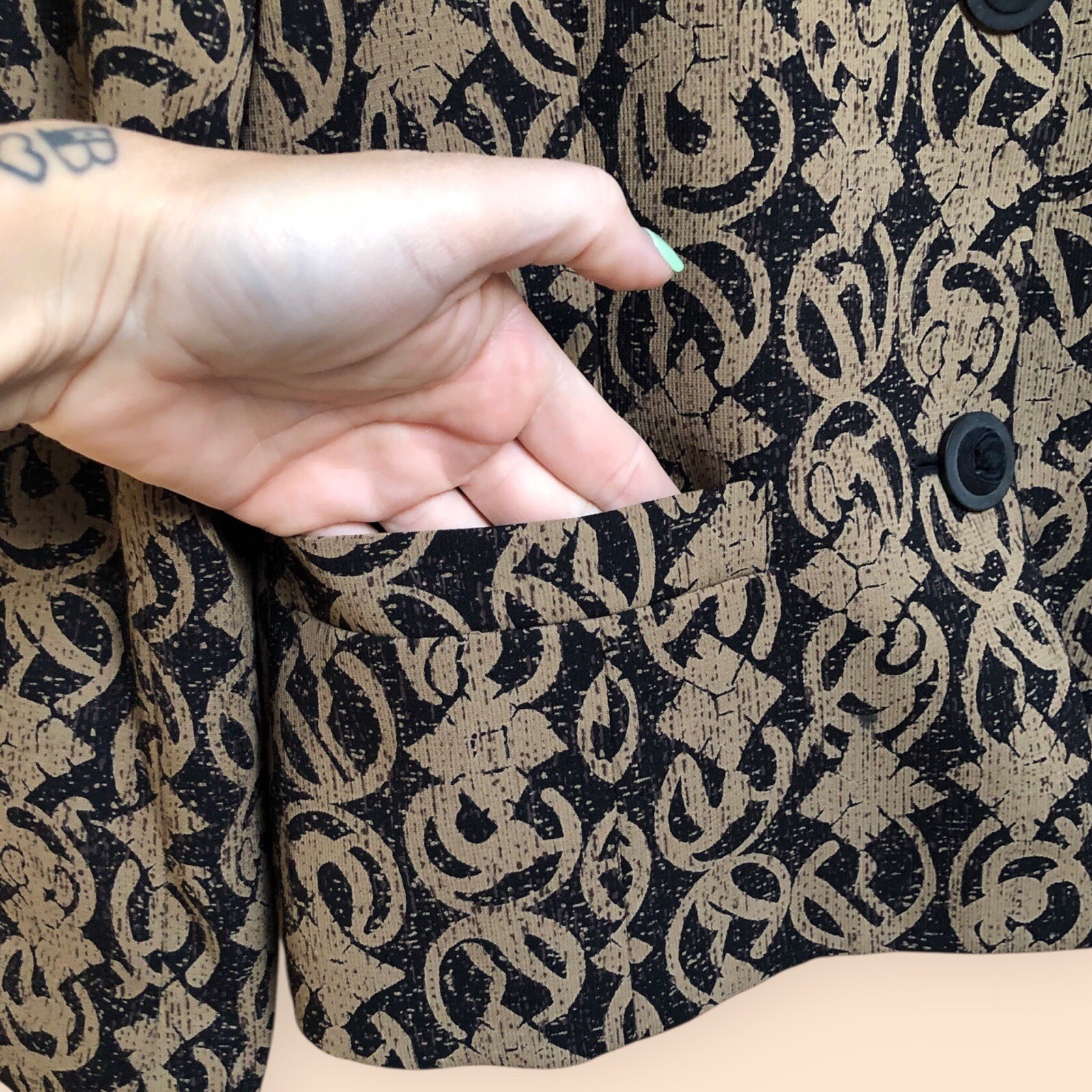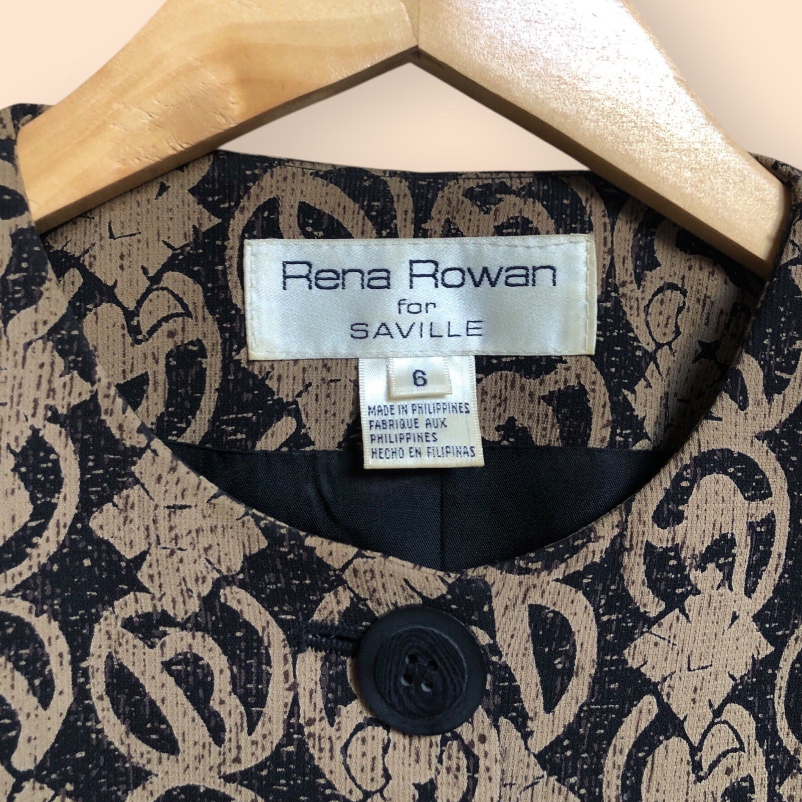 Vintage 90s Rena Rowan for Saville Black Tan Patterned Blazer Jacket Women s 6