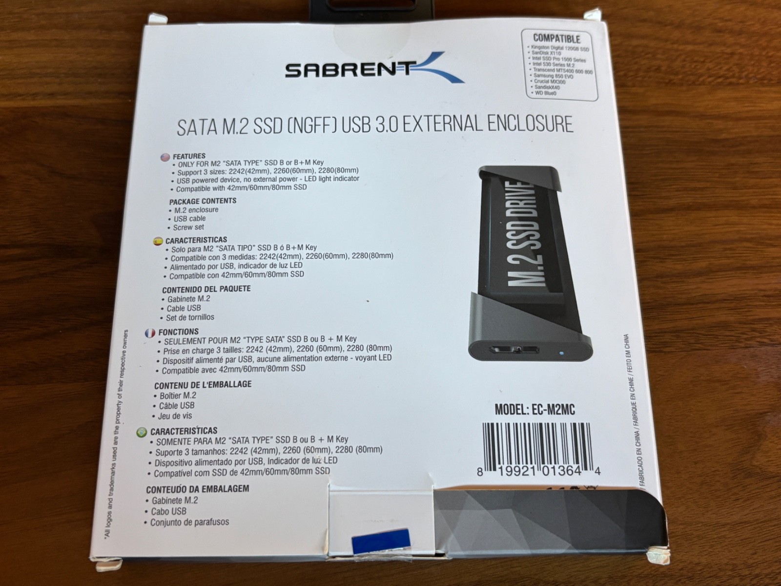 NEW - SABRENT M.2 SATA SSD to USB 3.0 Aluminum Enclosure EC-M2MC