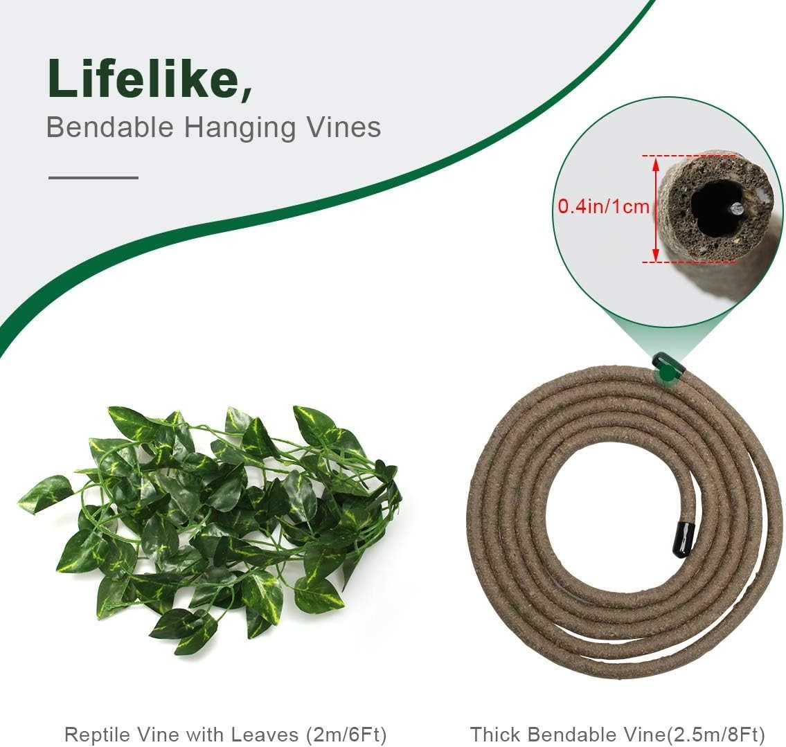 Flexible 8FT Reptile Vine with Leaves Suction Cups for Ideal Climbing Support