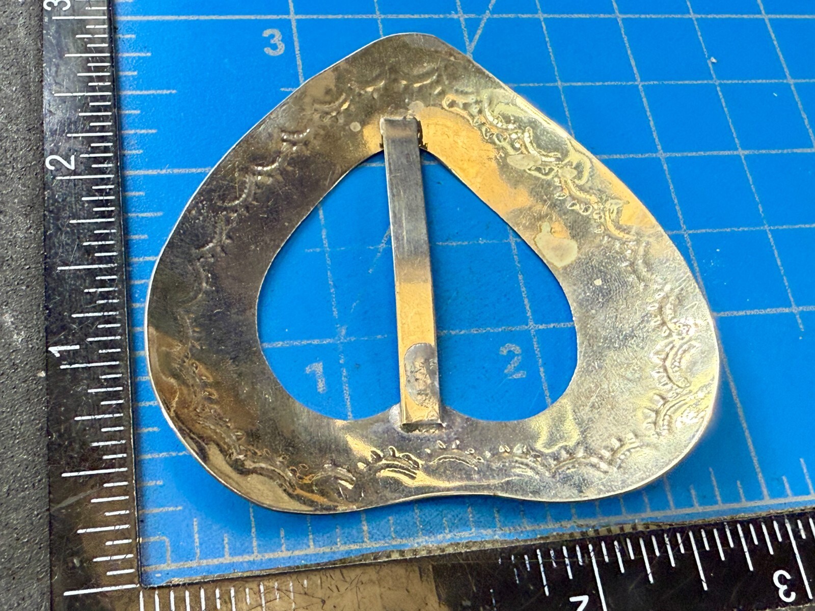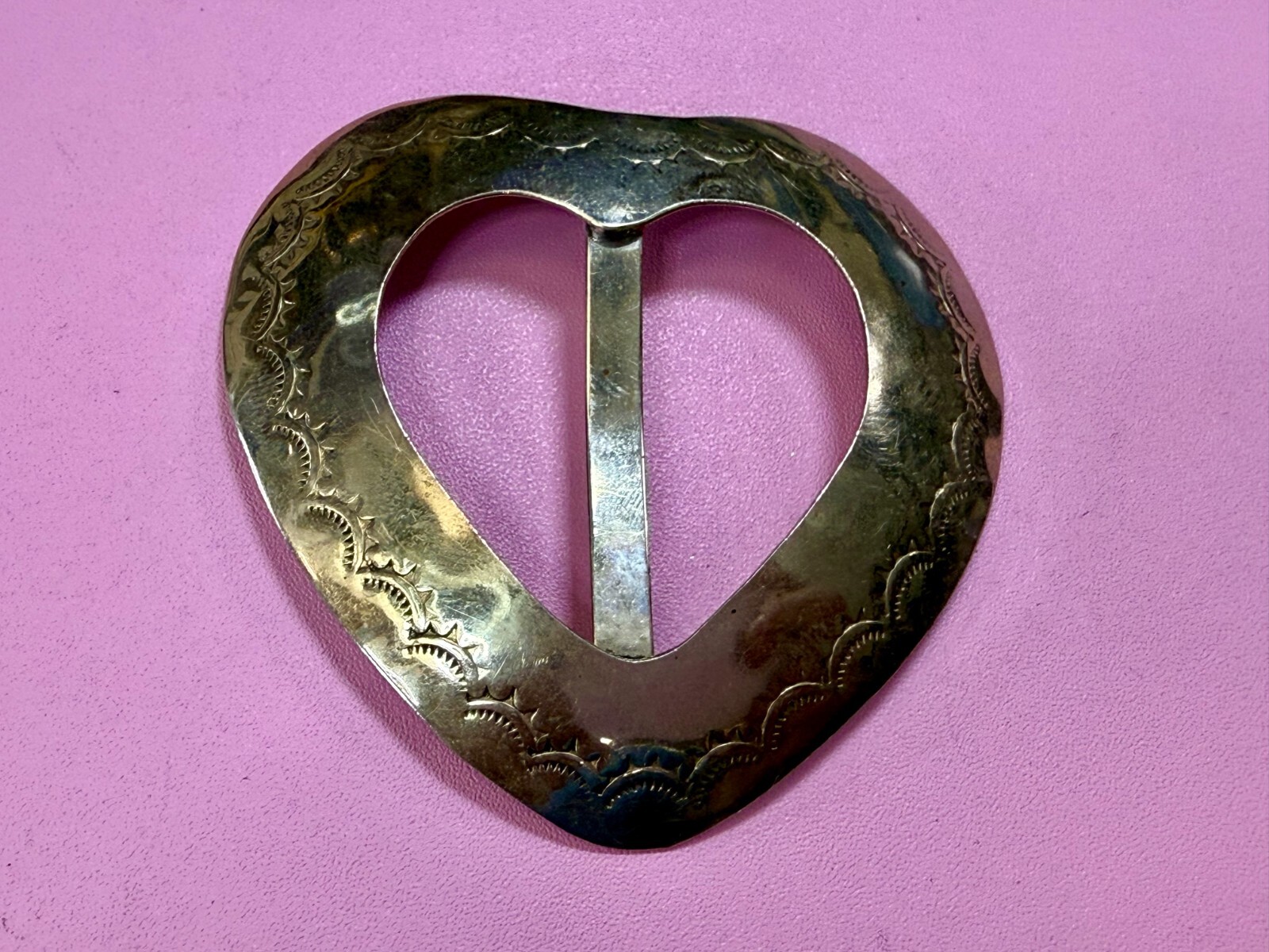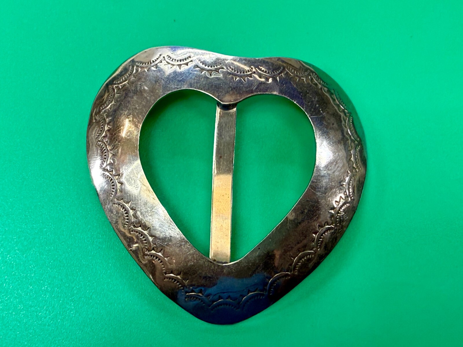 как выглядит Heart Shaped Cutout Vintage Silver Tone Stamped Marked Belt Slide / Buckle фото
