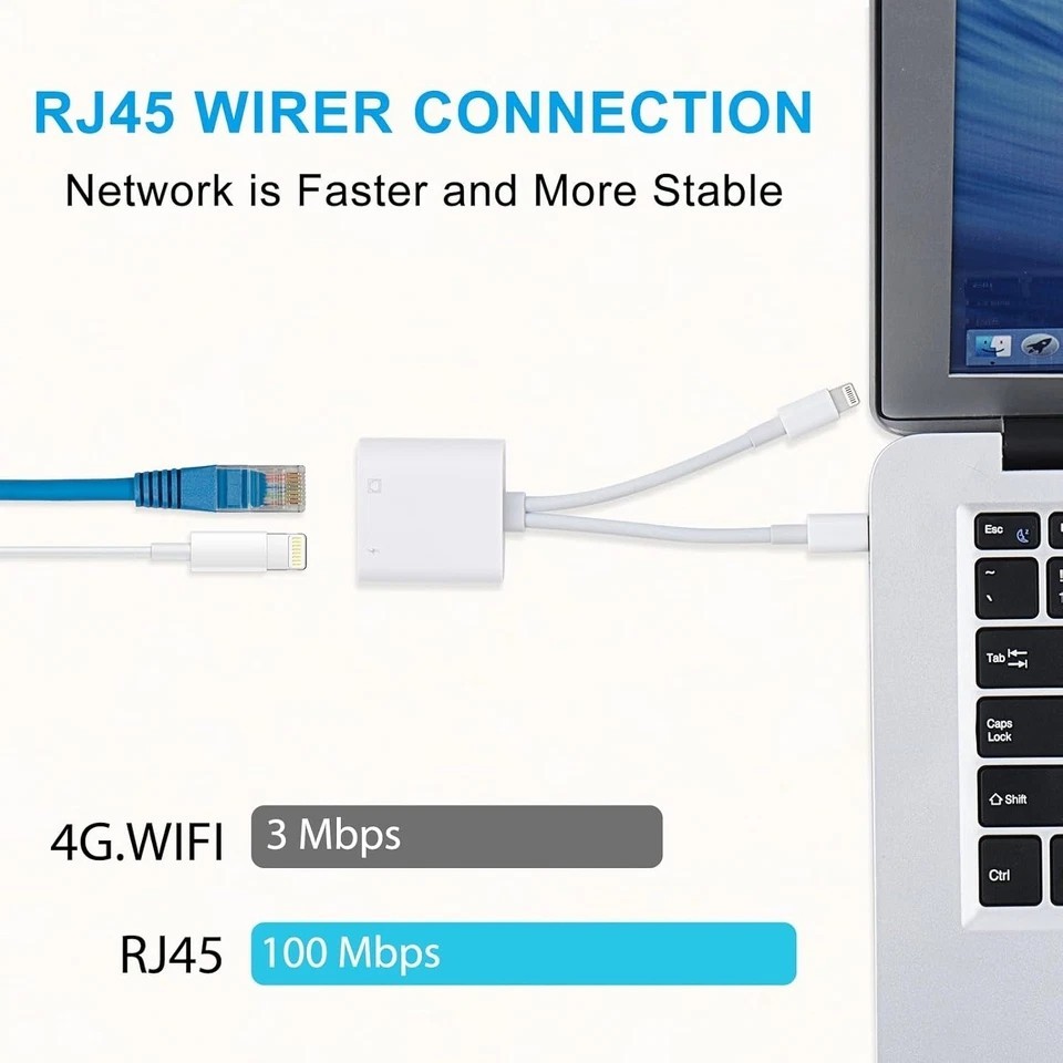 Lightning and USB C to Ethernet Adapter,2 in 1 RJ45 Ethernet LAN Network Adapter