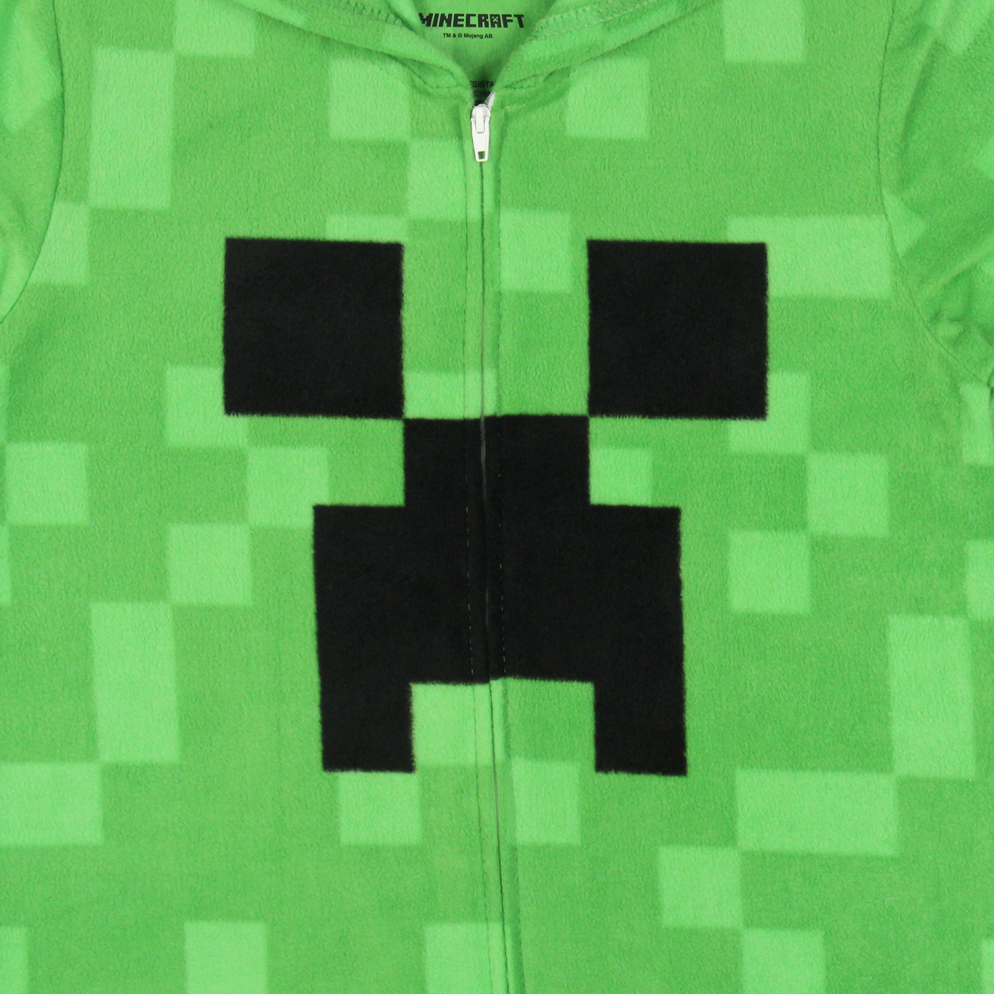 Minecraft Kids Fleece Creeper Hooded Union Suit Zip Front Footless Sleep Pajama