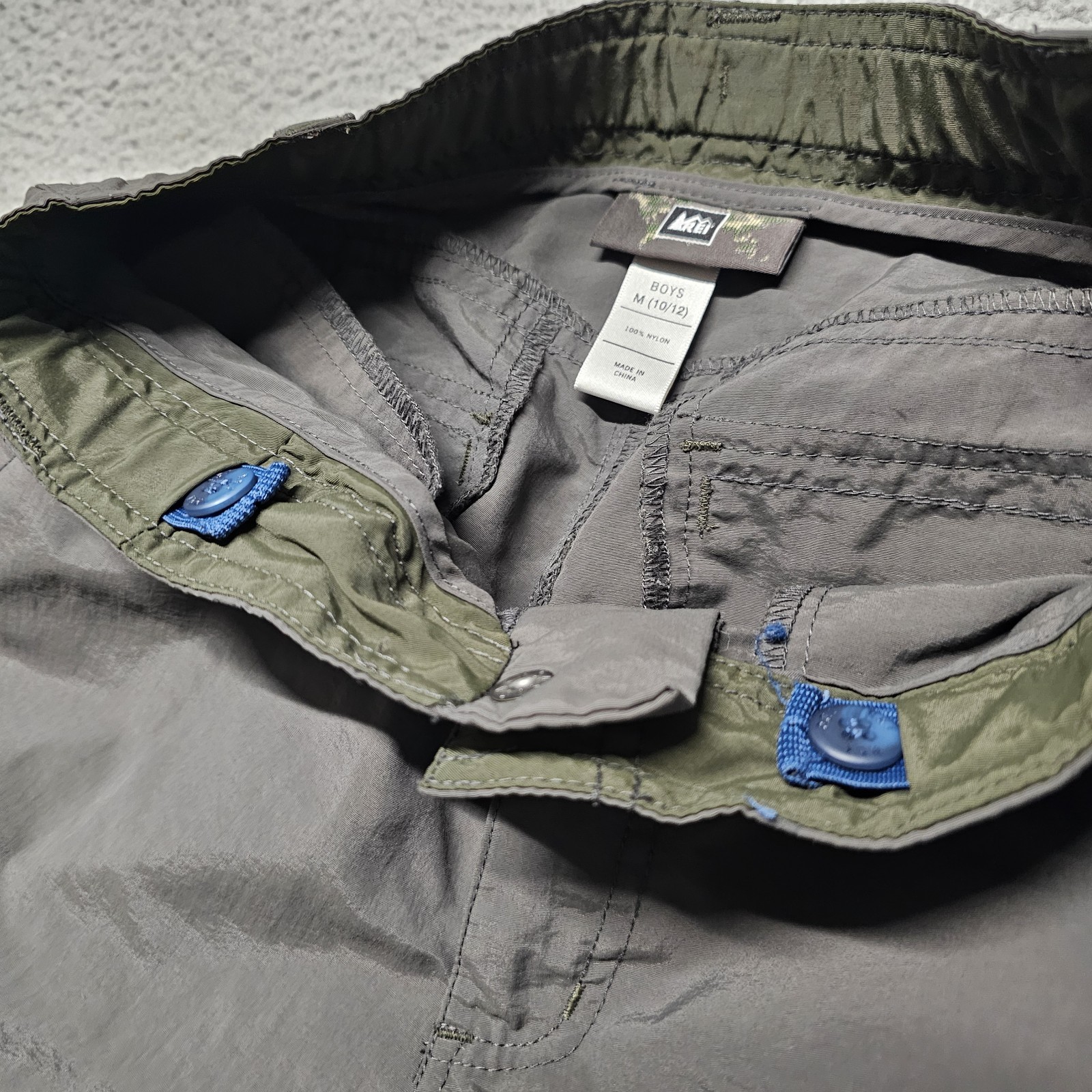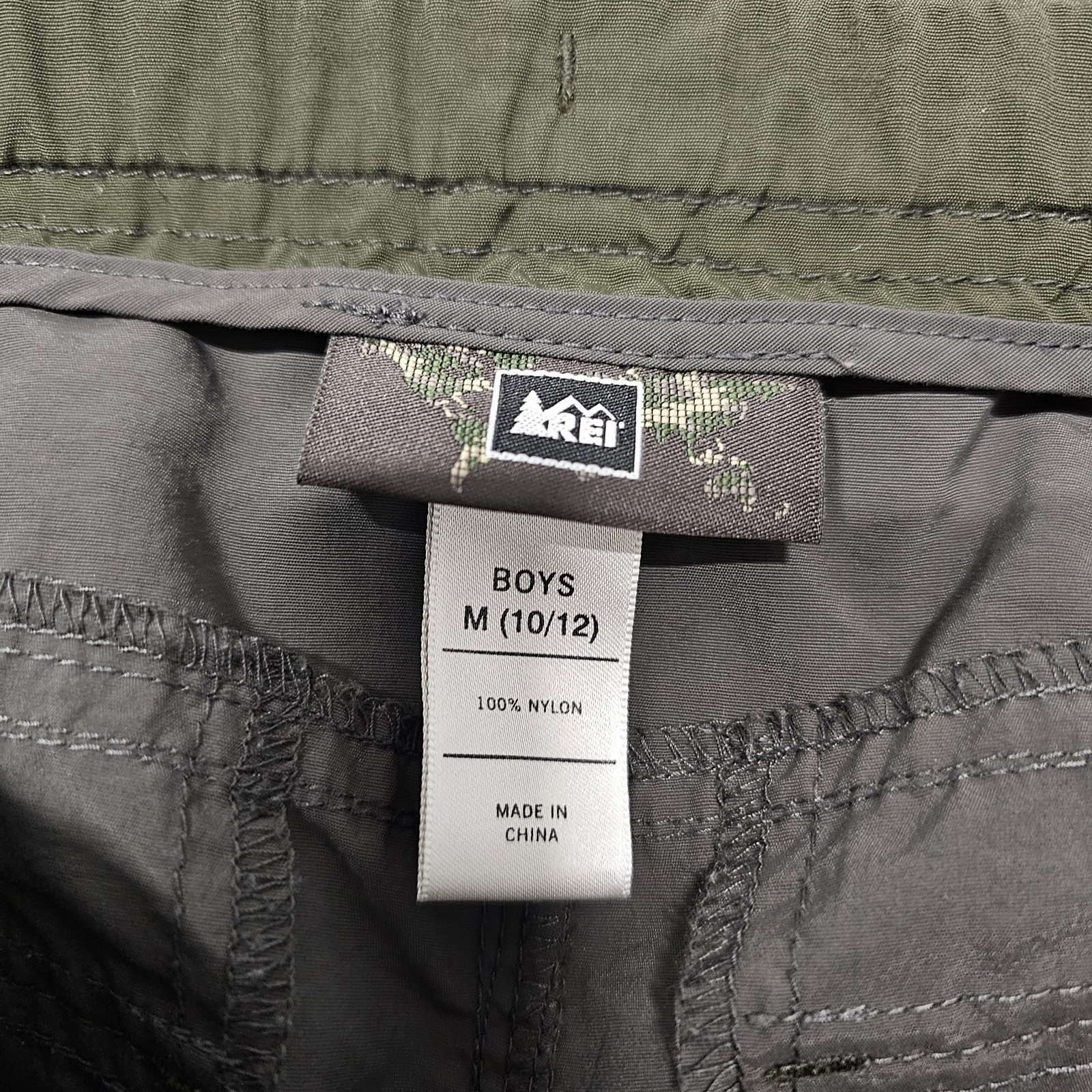 REI Shorts Boys Medium 10/12 Cargo Gray 100 Nylon Hike Camp Fishing 26x11