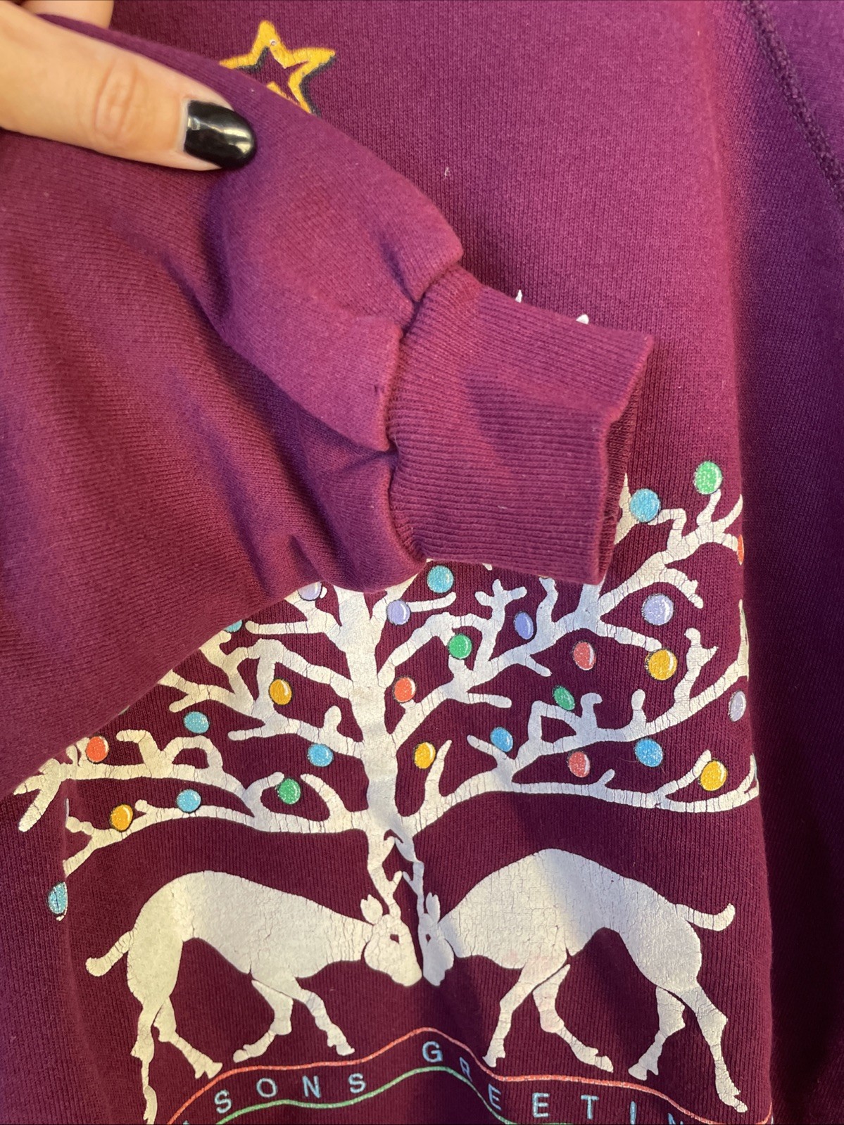 как выглядит Vintage Seasons Greetings 1990 Christmas Reindeer Crewneck Sweatshirt L Women s фото