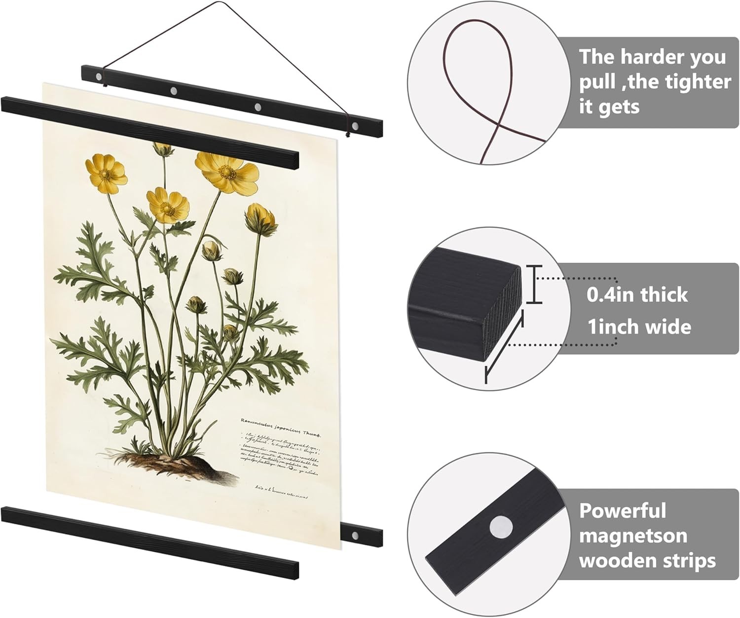 Magnetic Poster Hanger Frame- 16x20,16x24,16x22 Poster Frame Wood for Map Art...