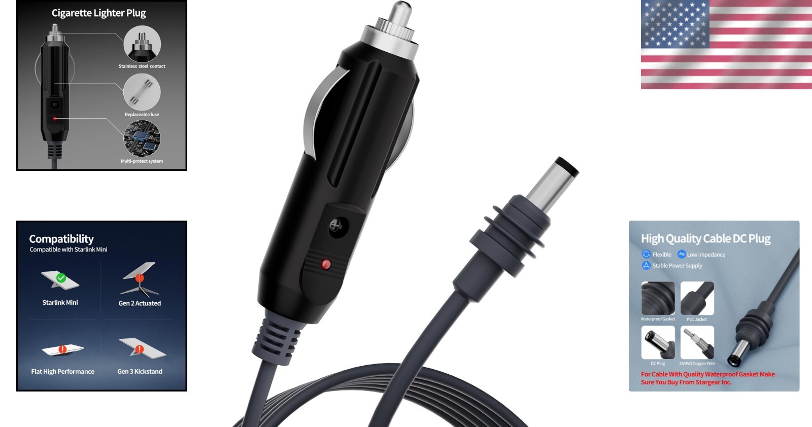 Starlink Mini DC Power Cable 10FT for Cigarette Lighter - Waterproof Elite