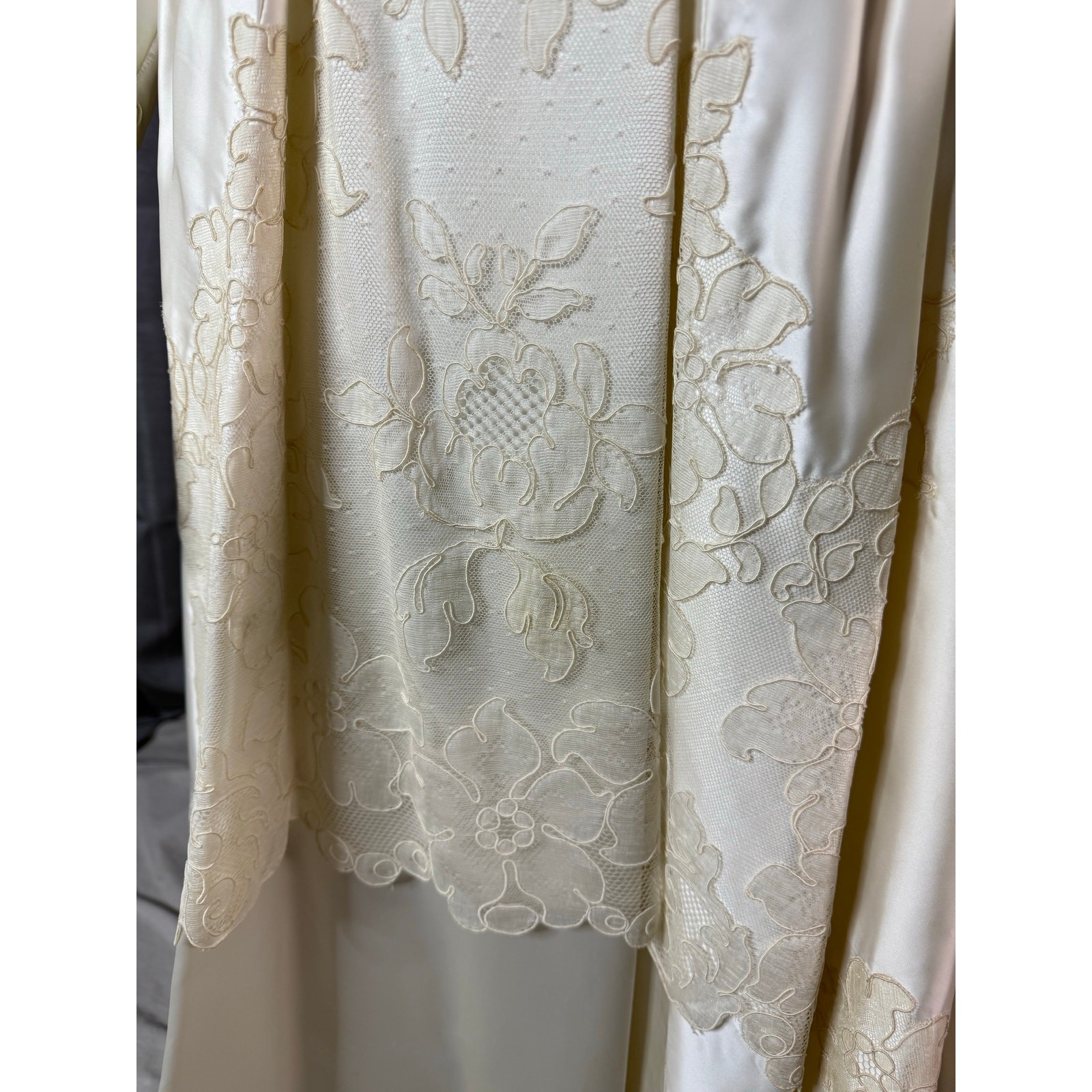 Vintage Off White Heavy Satin and Lace Wedding Dress Sz M