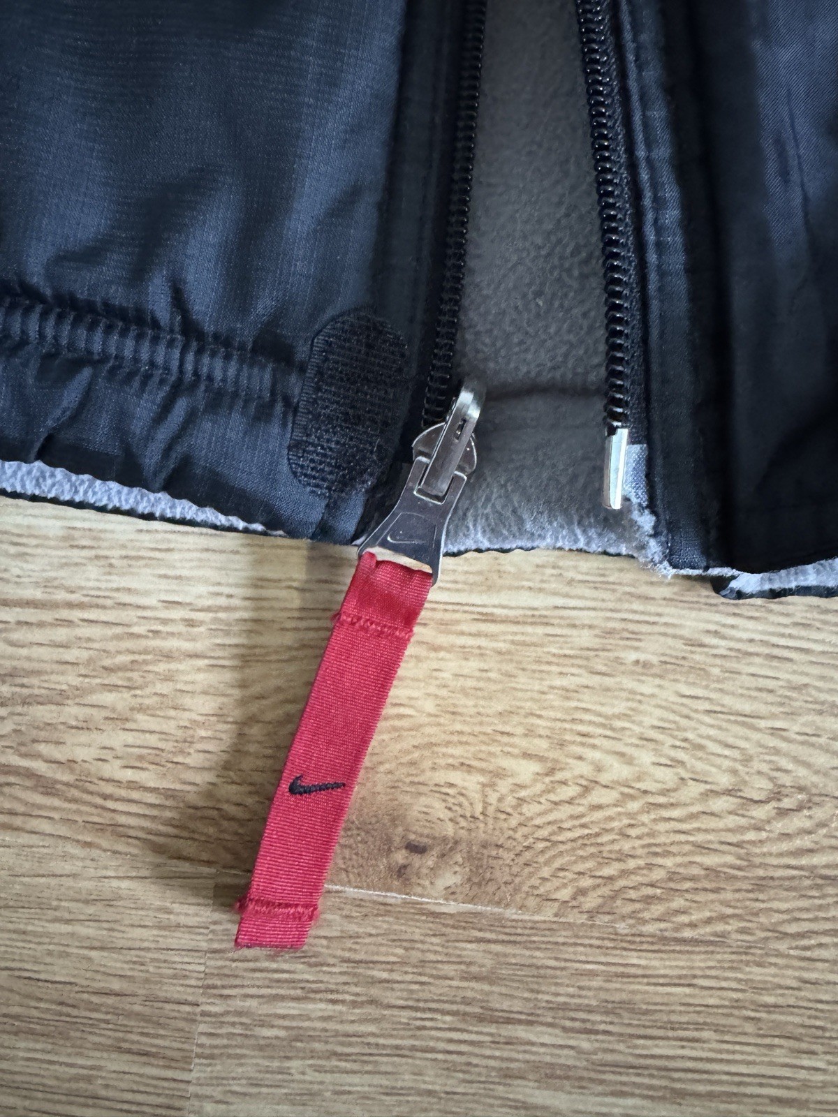 как выглядит VTG Y2K Nike Swoosh Reversible Quilted Red/ Black Bomber Jacket Sz XL Youth фото