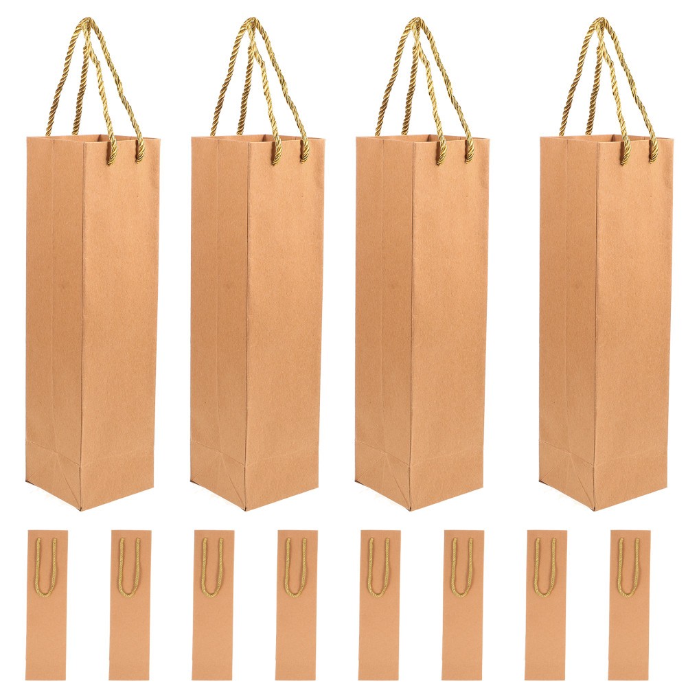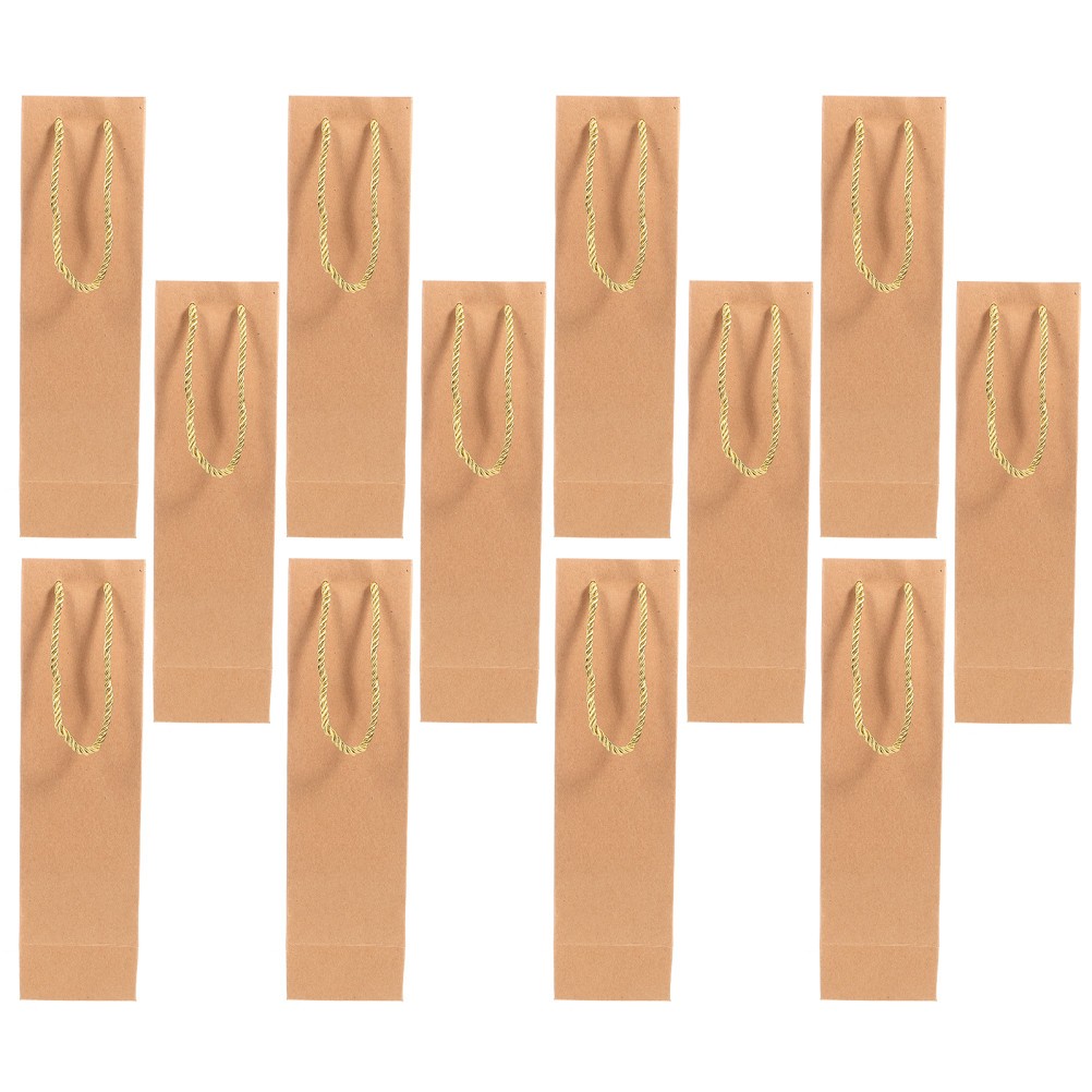 12 Pcs Kraft Paper Bags With Handle For Wine Bottle Gift 9.5 x 9 x 35 cm