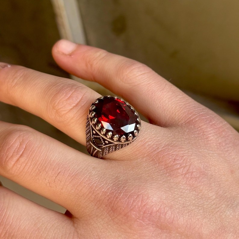 как выглядит 925 Silver Red Ruby Stone Turkish Handmade Men Ring фото