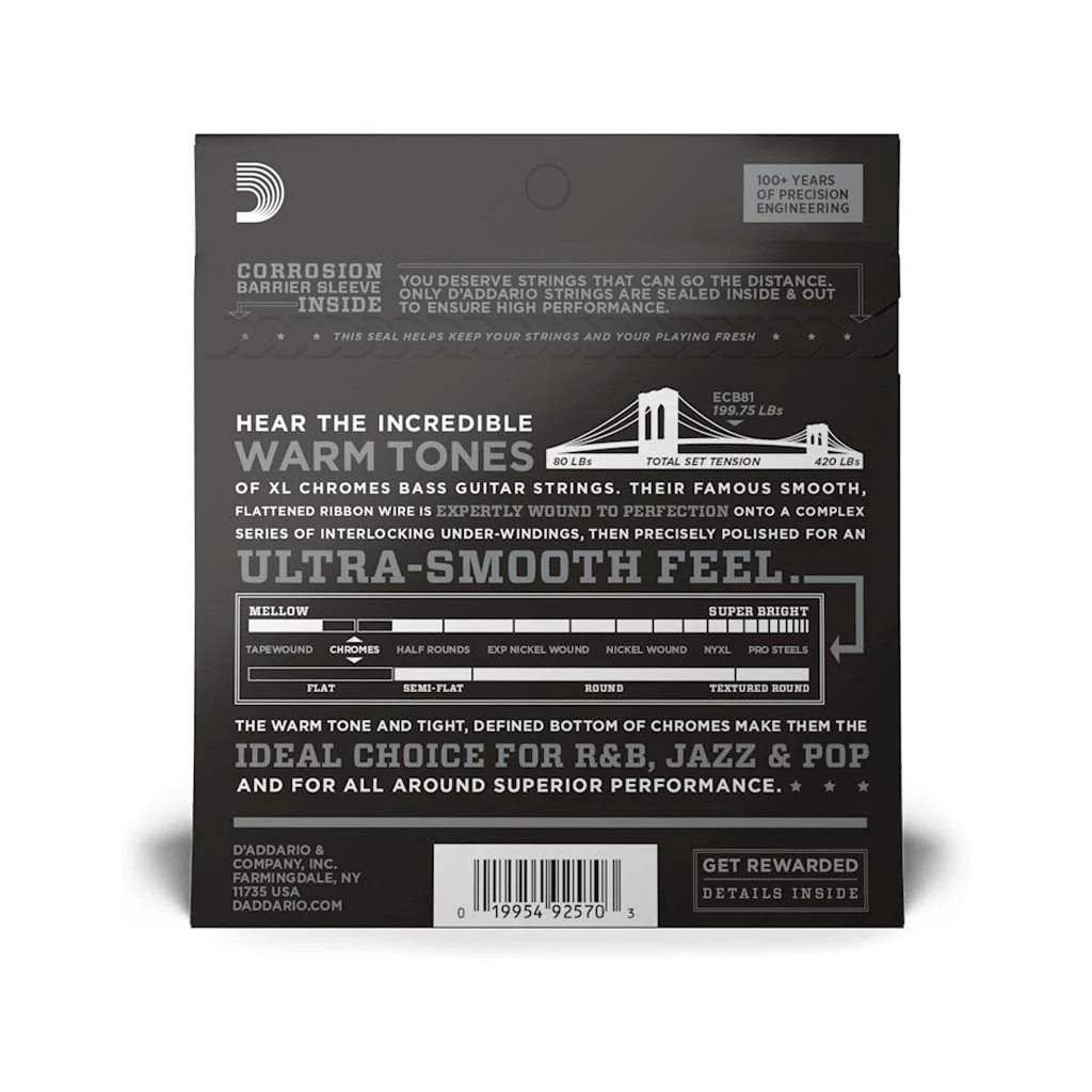 D'Addario Chromes Long Scale Bass Strings 45-100 ECB81