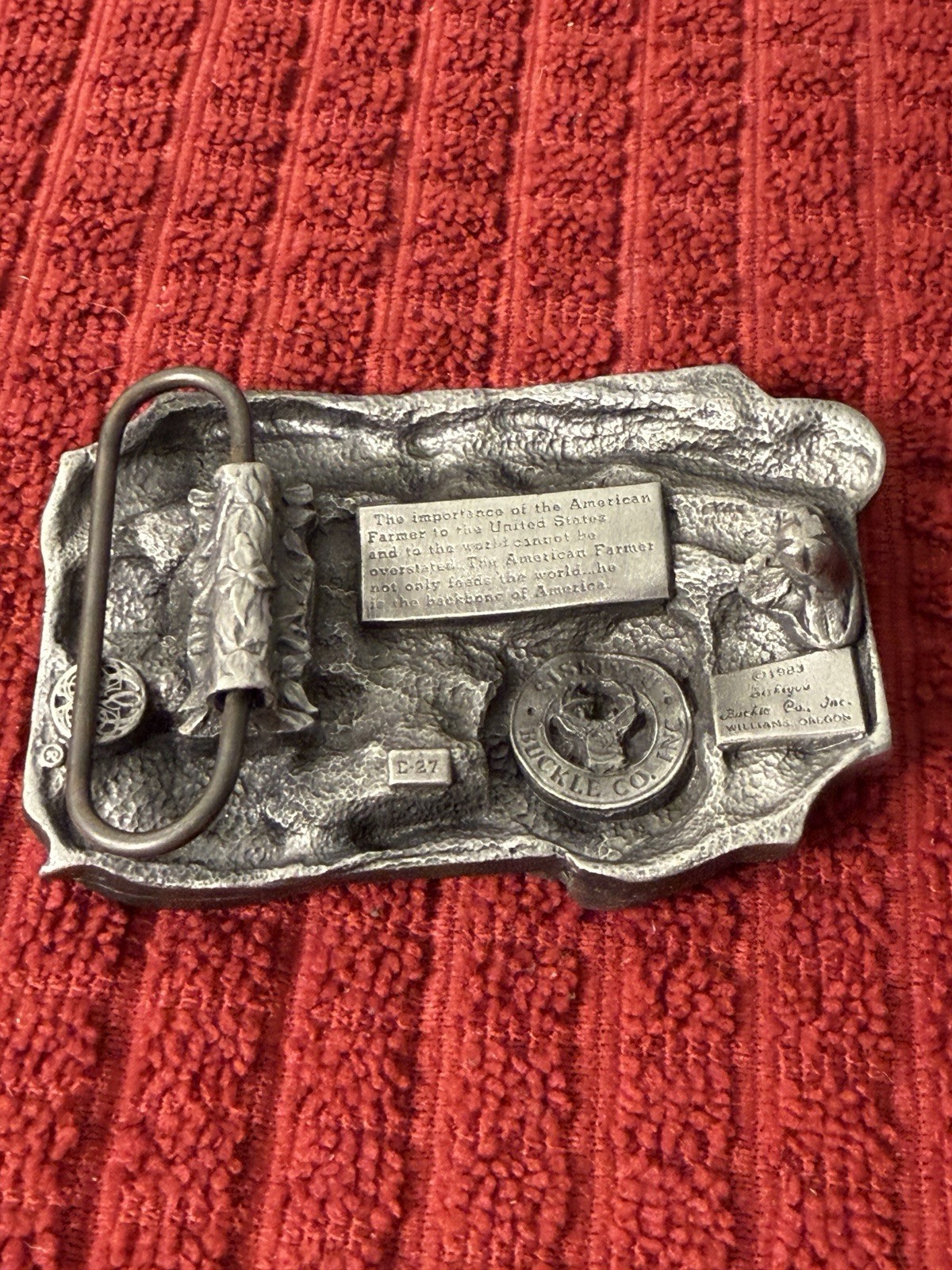 как выглядит VINTAGE THE AMERICAN FARMER FEEDS THE WORLD BELT BUCKLE 1983 SISKIYOU BUCKLE CO фото