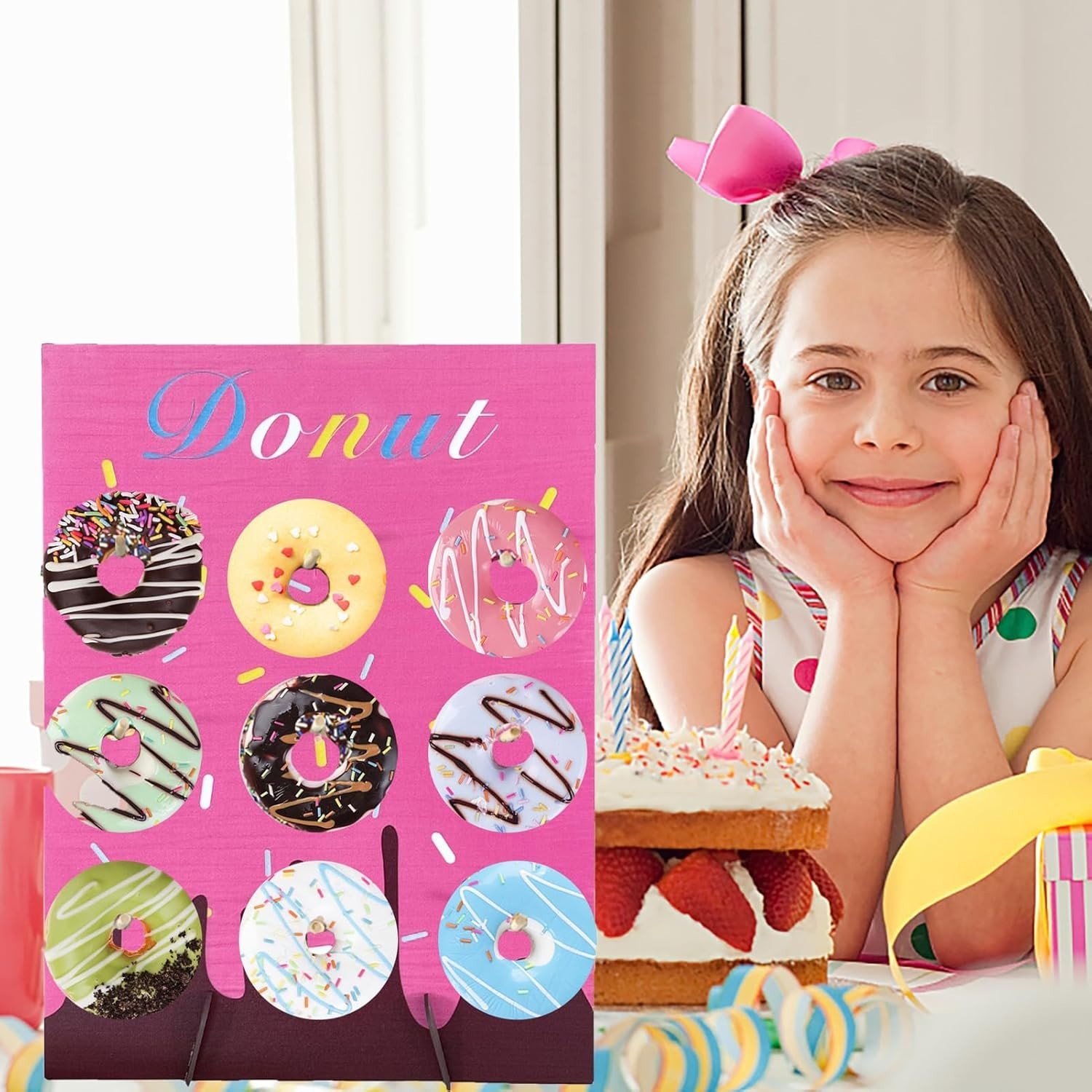 Pink Wood Donut Wall Display Stand Reusable Doughnut Board Holder Donut 15.74 in