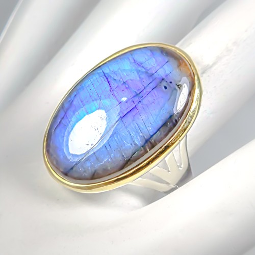 Vintage ring 35 ct Natural Labradorite Ring 925 Sterling Silver Size 9 /R437136