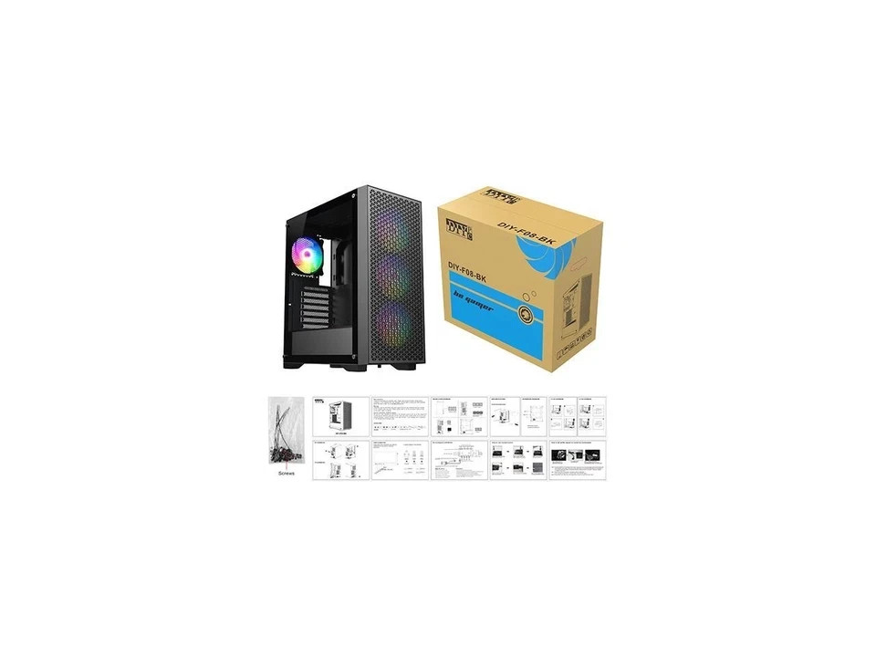 DIYPC DIY-F08-BK Black USB3.0 Tempered Glass ATX Gaming Computer Case w/ 4 x ARG