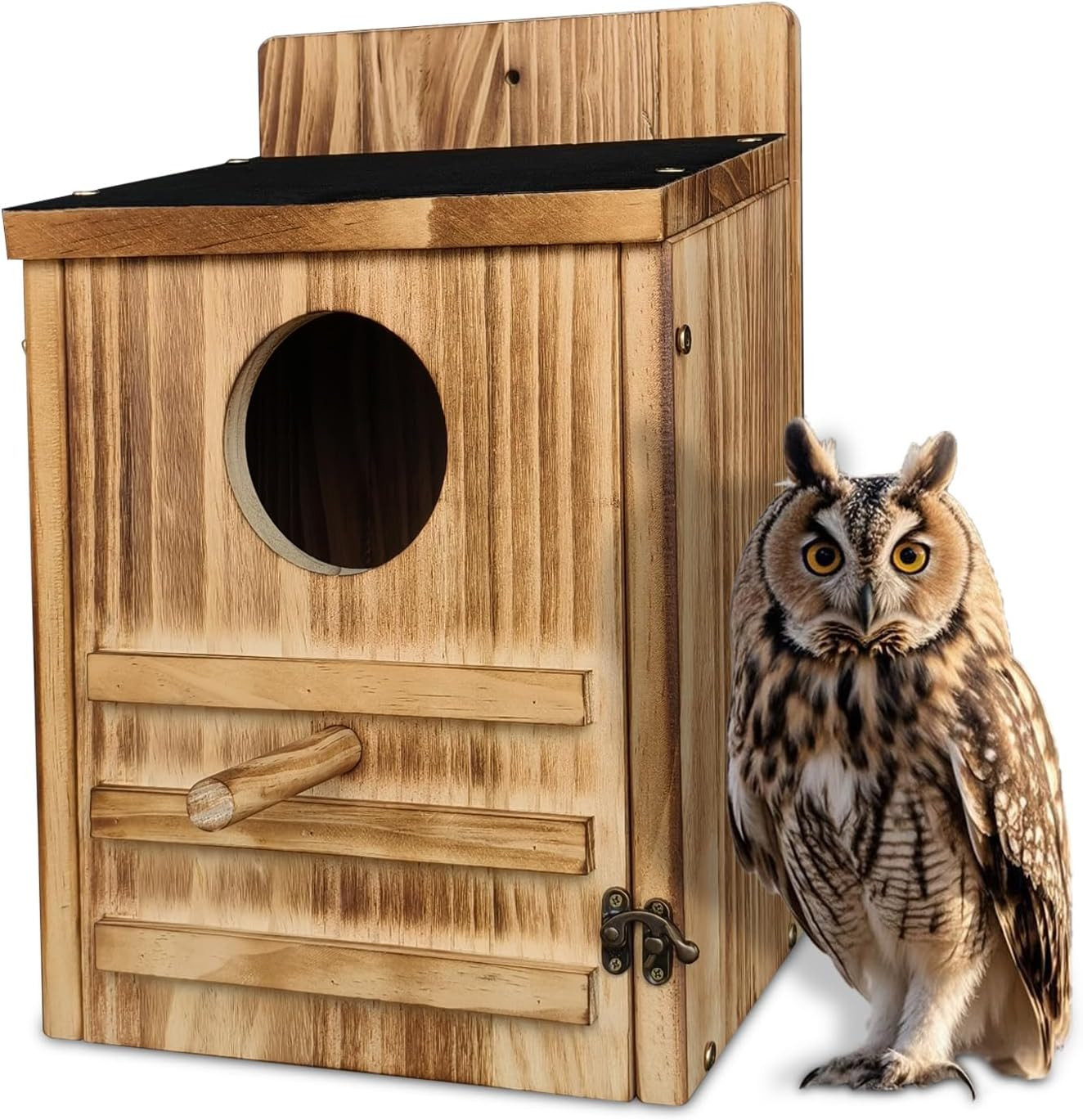 • Screech Owl House Owl Bird Box Large Handmade Wooden Circular Opening Screech