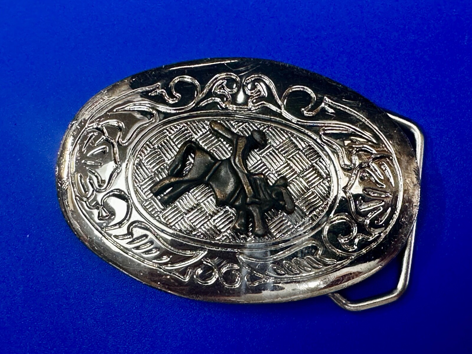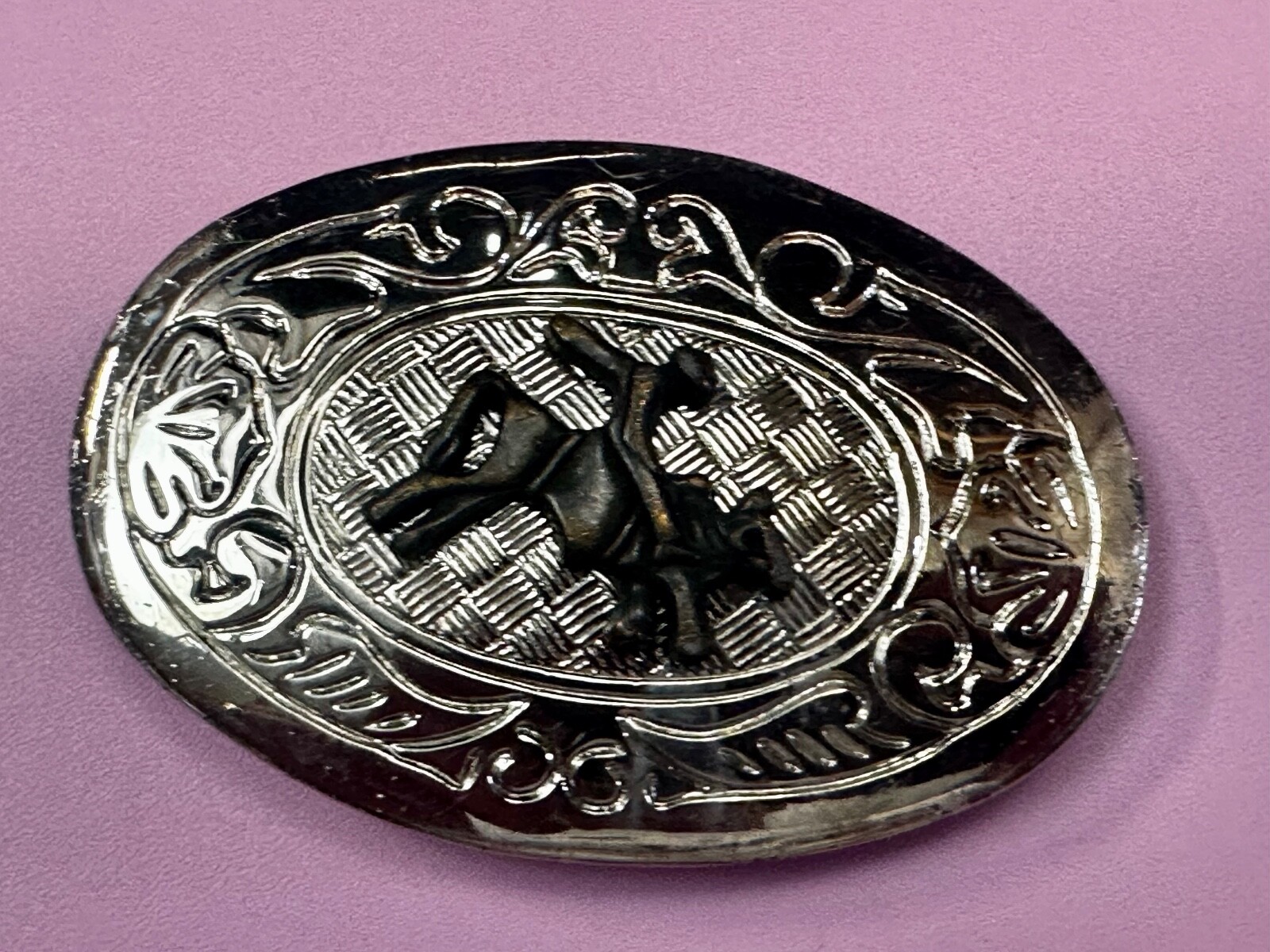 • Cowboy Saddle Bronc Buster two tone Vintage Western Cowboy oval Belt Buckle