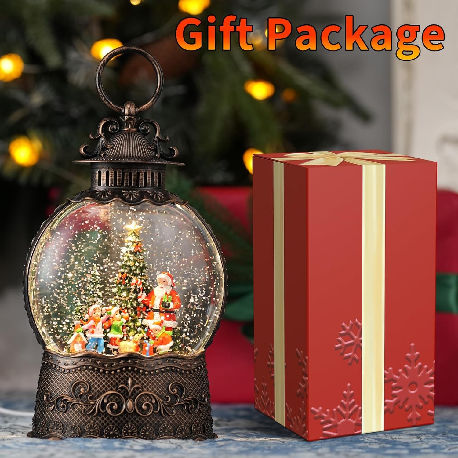 Snow Globe with Santa Claus, Light Up Christmas Snow Globes with Music Timer - U