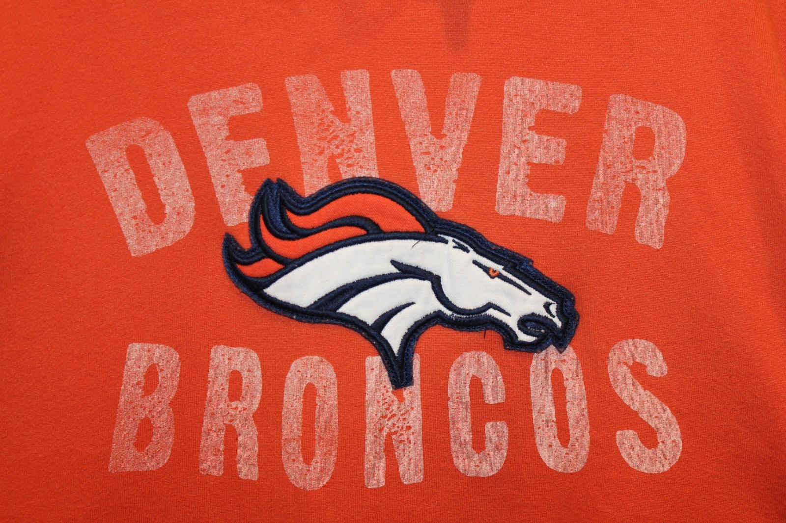 как выглядит orange Denver Broncos distressed-style hoodie / hooded sweatshirt - adult L фото