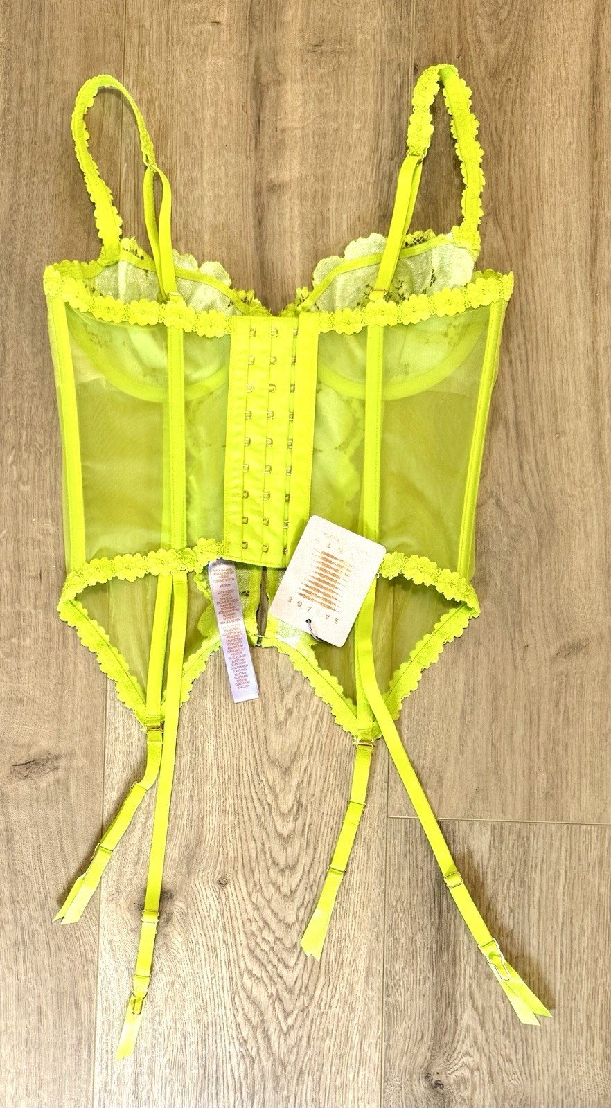 Savage X Fenty Perfect Poppies Lace Bustier w Garter Size Medium New With Tags