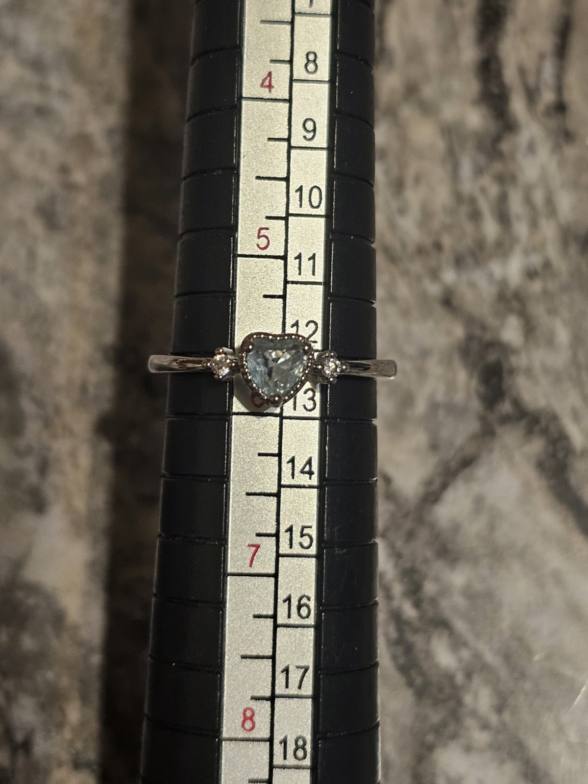 Sterling Silver Plated Blue Heart Ring Size 5.75